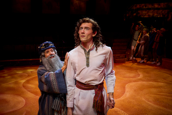 The musical is inspired by the Old Testament tale of Joseph, a dreamer blessed with a vibrant coat from his father, Jacob. This gift stirs envy among Joseph's eleven brothers, who, resentful of their father's favoritism, decide to sell Joseph into slavery, hoping to prevent his dreams of ruling over them from becoming reality. Joseph's journey takes him to Potiphar's house, where he is unjustly imprisoned. However, Joseph discovers that his unique talent for interpreting dreams might be his ticket to freedom while his brothers face the consequences of their betrayal. The plot is straightforward and the character development is limited, but the show offers a great deal of enjoyment, thanks to its catchy score that spans various musical genres, from pop and country to calypso. Two standout ballads, "Close Every Door" and "Any Dream Will Do," shine with Rice's precise lyrics beautifully complementing Lloyd Webber's catchy melodies, capturing both Joseph's struggles and the show's optimistic ending. The addition of a Narrator, who not only comments on but also engages in the story, adds a way for the audience to stay connected to the story, and the themes of jealousy and forgiveness are ones that resonate. Hale's cast is led by Brandt Norris as Joseph and Michala Montaño as the Narrator. They've been featured in many Hale shows over the past few years and both are wonderful here, delivering strong performances full of emotion and excitement. Norris' singing voice soars with beautiful delivery of his solos, especially a moving "Close Every Door," while Montaño's rich, bright singing voice and warm portrayal create an endearing and vibrant character. There isn't a weak link in the rest of the cast, which is made up of many Hale regulars. Truman Regard-Whipple, Joshua South, and Trevon Powell as Joseph's brothers Reuben, Simeon, and Judah, respectively, excel on their solo songs; Regard-Whipple and South are gifted comics who add many humorous bits to their numbers, and Powell's smooth clear voice shines on "Benjamin Calypso." Zac Bushman, as the Elvis-loving Pharaoh whom Joseph helps, has an absolute blast in the part. However, Bushman's thick Elvis accent is a bit hard to understand at times. Jim Roehr oozes warmth as Joseph's father Jacob, and William Lovell and Joseph Strode bring a nice touch of comedy as the Butler and Baker whom Joseph meet in jail. Lovell and Strode, along with Archer Cox, Jeremy Cruz, Reece Harris, Albert Mendoza, Declan Skaggs, and Bennett Allen Wood, portray Joseph's other brothers, with each bringing an abundance of joy to their roles. Brie Wadsworth-Gates has a fun cameo as Potiphar's Wife and Sophia Castelluccio, Sarah Cleeland, Ava Cusiter, Gabrielle Gernon, Evelyn Humphrey, Josephine Maldonado, Maddie Sue Miller, Olivia Porter, Diana Stapley, and Lillian Thelen play the wives and many other roles with an infectious glee. The choreography by Cambrian James is lively, varied, and full of fun moments, complementing his direction, which is infused with heart and humor. James' staging creates a strong connection between the performers and with the audience, with both Norris and Montaño often singing directly to them, and he also doesn't downplay the emotion in the story which helps to convey the musical's themes of family and forgiveness. The entire ensemble seem to be having a blast with the ever-changing costumes, skillfully designed and coordinated by Brielle Hawkes. McKenna Carpenter's immersive set and Tim Dietlein's lush lighting bathe the stage in rich, warm colors, featuring a desert-painted floor, stone structures, and two-dimensional wall hangings that evoke the sunny landscapes of Egypt. Under Tyler Thompson's musical direction, the cast delivers exceptional vocal performances. Packed with catchy tunes and overflowing with comedy and charm, Hale's outstanding cast, top-notch choreography, and bright direction, combined with impressive creative elements, elevate the somewhat simple Biblical story of Joseph into one with charm and a big heart. The result is a lively, humorous, energetic, joyful, and thoroughly captivating production of this popular musical. Joseph and the Amazing Technicolor Dreamcoat runs through October 5, 2024, at Hale Centre Theatre, 50 W. Page Avenue, Gilbert AZ. For tickets and information, please visit www.haletheatrearizona.com or call 480-497-1181 Music by Andrew Lloyd Webber Cast: |