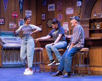 Sweat is set in Reading, Pennsylvania, and alternates between events that happened in 2000 and those set in 2008, covering the rise and fallout of economic and social unrest among a group of factory workers. The story revolves around a group of friends who work at a steel plant and is set mainly in a local bar where they regularly gather to celebrate their birthdays and to unwind after work. When layoffs and management changes threaten their livelihoods, tensions flare, leading to resentment, betrayal and violence. At the center of the drama are lifelong friends Tracey and Cynthia, whose bond is tested when one of them is promoted to management. That promotion makes them a target of their friends' frustration. Their sons, Jason and Chris, also find themselves at odds with each other and those around them as tensions in the town escalate; the two are participants in a violent act that has life-altering consequences. Nottage spent two years talking with residents of Reading before writing the play and she has done a good job in crafting a story that focuses on the unraveling relationships of a group of friends impacted by a plant closure and the consequences of decisions driven by fear, anger and survival. However, while the characters are intriguing, some border on archetypes in order to represent specific social or racial issues rather than being fully fleshed-out individuals, and many of the scenes are repetitious in driving home the stereotypical traits of those characters and the uncertainty that a plant closure has on them. Tracey, for instance, represents the anger and resentment that corporate greed and economic disparity can create and the emptiness that happens when someone has worked their entire life at a plant but now finds themselves out of work. Cynthia, while being a slightly more complex character, still has many layers that are underexplored. Similarly, Jason and Chris lack the depth needed to make their fates resonate as strongly as you'd expect from the first scenes when they are both speaking with their probation officer. We know from those first scenes that something horrible happened, and Nottage does a good job of cluing us in to what transpired, but the clues come slowly. A lot of the play is spent covering moments that happened in 2000–only a few scenes are set in 2008 showing the aftermath of those earlier events. Seeing how the main characters have changed over those eight years, some drastically, made me wish there were more of those scenes and that the ones set eight years earlier were shortened in order to fully show the impact of what happened in 2000. I know this play won the Pulitzer Prize, so, while the plot and characters are intriguing and the ending is still moving, I was expecting it to be more riveting than it is and less repetitive. Fortunately, the cast under Chanel Bragg's effective direction are superb. Cindy Covington and Ryan L. Jenkins, who play Tracey and Cynthia, deliver powerhouse performances that capture the complexities of their friendship and the struggles they face. Covington exudes raw anger and unfiltered emotions but also vulnerability as Tracey clings to her livelihood as the world around her is on the brink of collapse. Her fiery confrontations and moments of despair are deeply affecting, and Covington does a fantastic job in adding depth to the character; her Pennsylvanian accent is also quite good. Jenkins is just as good giving a nuanced performance as Cynthia, who has to navigate the difficult transition from co-worker to boss while also dealing with family issues. Jenkins captures Cynthia's internal conflict as she tries to reconcile her loyalty to her friends with her need to support her family, resulting in a portrayal that is moving and empathetic. Equally impressive are the performances of Ty Klassen as Jason and Tanner J. Conley as Chris, the sons of Tracey and Cynthia. Klassen presents Jason as a hot shot full of volatile energy, hardened by disappointment and fueled by misplaced anger. "His physicality and emotional intensity make his downward spiral devastating to watch and also impressively delivered since Klassen has to switch several times to portray the character over the eight-year period. Conley, on the other hand, brings warmth and determination to Chris, who dreams of escaping the factory life through education, only to face crushing setbacks. Together, their performances highlight the generational impact of economic instability and lost opportunities, and the final scene they share with other cast members is heartbreaking. In supporting roles, Walt Pedano is warm and sincere as Stan, the bartender and former factory worker who serves as a voice of reason and a confidant for the play's main characters. Roosevelt Watts Jr. is a bundle of raw emotions as Brucie, Cynthia's estranged husband who descends into addiction due to his unemployment. Ricky Araiza does an excellent job as Oscar, the hardworking Colombian-American busboy at the bar, representing the outsider who is often overlooked and taken for granted by the regulars. Raphael Hamilton is excellent as Evan, the parole officer whose no-nonsense demeanor contrasts with the emotional chaos of the events in Chris and Jason's lives, and Kim Richards does a lovely job in the small role of Jessie, a co-worker of Tracey and Cynthia who drinks heavily to try to escape her lost dreams. Tianna Torrilhon-Wood's set does an excellent job in depicting the bar that the majority of the scenes are set in and, with the smart lighting design by Stacey Walston, works incredibly well with just a few small set elements to portray the other locations in the plot. The costumes by Jessie Tully authentically depict the factory clothes and character-appropriate outfits. Sweat is a stirring and thought-provoking exploration of the struggles faced by America's working class. While it is set 20 years ago, the situations explored are still relevant today and the play has a raw honest