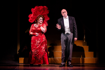 Set in 1890s New York, Hello, Dolly! follows the irrepressible Dolly Gallagher Levi, a matchmaker and schemer who sets her sights on marrying the wealthy but curmudgeonly Horace Vandergelder. Along the way, Dolly also has her hand in orchestrating romantic entanglements for Horace's employees, Cornelius and Barnaby, as well as milliner Irene Molloy and her assistant Minnie Fay. With a score by Jerry Herman that includes many beloved songs, plus a comical yet poignant book by Michael Stewart that features several humorous twists and heartfelt moments, the story unfolds as a joyous celebration of love, adventure, and second chances. The ABT cast is phenomenal, led by a powerhouse performance from Cassandra Norville Klaphake as Dolly. Norville Klaphake exudes charisma, cunning, and warmth, delivering Dolly's witty quips and heartfelt moments with effortless charm. Her rendition of "Before the Parade Passes By" is both poignant and inspiring, while her delivery of the title number is a showstopper. There have been many Broadway and Hollywood stars who have played Dolly since the show premiered in 1964, but Norville Klaphake manages to make the part entirely her own with the perfect blend of humor and heart. As Horace Vandergelder, James Rio strikes the perfect balance between gruffness and vulnerability, making his transformation both believable and endearing. If you find yourself teary eyed at the end, chalk it up to the solid performances from Norville Klaphake and Rio. As Cornelius, the young romantic clerk who works in Vandergelder's shop, Collin O'Neill delivers a standout performance, combining boyish enthusiasm with impeccable comedic timing and a gorgeous singing voice. Irene Molloy is portrayed with grace and wit by Jill Tieskoetter, her elegance matched by a radiant and earthy voice that shines in her songs, including a beautiful version of "Ribbons Down My Back." As Barnaby and Minnie, the show's comedic duo, Dash Deusterman and Elyssa Blonder add plenty of charm and laughs, with their delightful energy and sharp comic timing enhancing every scene they're in. Danny Feldman and Cara Rizzi Richman shine in supporting roles, and the tight-knit ensemble is equally impressive, bringing the vibrant world of Yonkers and New York City to life with their precise dancing and exuberant vocals. Danny Gorman's direction is crisp and focused, ensuring the comedic and emotional beats land perfectly. Kurtis Overby's choreography is playful and inventive, with big production numbers like "Put On Your Sunday Clothes" and "Dancing" bursting with energy. The creative elements are wonderful. While the costumes are rentals, Dolly's outfits were designed by Morgan Andersen and they are gorgeous. Cody Tellis Rutledge's detailed sets evoke the vibrant and romanticized 1890s. Mark Foreman's music direction derives clear vocals from the entire cast; I only wish the seven-piece band were a little larger to give this tuneful score the full sound it deserves. ABT's production of Hello, Dolly! is one of their best. With its exceptional cast, lively direction, and stunning visuals, it delivers a joyful and heartwarming experience that will remind audiences why this classic musical comedy has endured for generations. Hello Dolly! runs through February, 21 2025, at Arizona Broadway Theatre, 7701 West Paradise Lane, Peoria AZ. For tickets and information, please visit www.azbroadway.org or call 623-776-8400. Director: Danny Gorman Cast: |