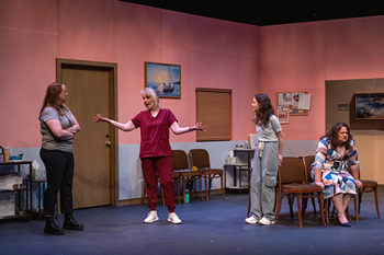 The setting of the play is a women's reproductive health clinic in Houston, Texas on one of the two days each week that they provide abortions. The date is the morning of June 24, 2022, the same day the U.S. Supreme Court issued its ruling on Dobbs v. Jackson Women's Health Organization, overturning Roe v. Wade, which had guaranteed legal access to abortion since 1973. With the constant drone of pro-life devotees protesting outside the clinic walls, the plot begins shortly before the Supreme Court ruling and follows three women navigating the emotional and physical toll of an unexpected pregnancy. Each of the three represent the range of ages, circumstances, and beliefs of those seeking an abortion and the complexities surrounding a woman's right to choose and the struggle for autonomy over her body and decisions about her health. Baldwin's play premiered in 2023 and does a fairly good job of presenting views from both sides of the abortion argument, although it clearly veers on the side of a woman having the choice to do what she wants with her own body and I do wonder if those who are pro-life would feel that the play is preachy at times. Baldwin fleshes out the three women who have come to the clinic that day so we can truly understand how each has thought about and even struggled with their decision. Baldwin also uses a fourth character, the woman working at the clinic to ensure the women fill out their paperwork and to go over the state mandated wording about their options during their intake process, as a way for us to hear each woman's inner conscious regarding what they are thinking during the interview and to clearly see that the decision they made didn't come lightly. Baldwin's writing is poetic yet brutally honest, creating a narrative that is both intimate and universally relatable no matter your sex or views on abortion. Although the characters are named in the program, their names are never spoken in the play. Instead, the three women are identified only by numbers in the clinic to protect their identities. Kate Haas, Dolores Mendoza, and Wyatt Murphy portray the women who have come to get abortions, and Debra Lyman is the woman working at the clinic. Haas and Mendoza are superb as the two older women. Hass is a no-nonsense lesbian in her 30s who got pregnant from a one-night fling and Mendoza is a 47-year-old woman with a young daughter who, after suffering several miscarriages, has found herself pregnant, but as the bread winner in the family, she feels another child would be detrimental to her career and her family's finances. Murphy is excellent as a 15-year-old who got pregnant the first time she had sex and who, along with her closest friend and family, are pro-life. Lyman is great as the individual who pushes and prods the women to let us hear their inner thoughts and stories. Under E.E. Moe's adept direction, the cast deliver fleshed out, distinctive, and heartbreaking portrayals with performances that shift between moments of strength and vulnerability and emotional highs and lows. All four actresses create individuals that are complex, empathetic, raw, and deeply felt, ensuring that each individual resonates with the audience. Tianna Torrilhon-Wood's set design perfectly captures the antiseptic feeling of a bland clinic waiting room, and Stacey Walston's lighting draws our focus to highlight each character when it's their turn to reveal their past and their thoughts. Allison Gilkey's great costumes are character specific. The production's simplicity allows the story and its powerful themes to take center stage, making the experience even more impactful. Fetal is a heartbreaking, timely, and thought-provoking play. With powerful performances and a play that offers an unflinching exploration of difficult themes, Stray Cat's production is both heartbreaking and deeply moving, highlighting the loss of a woman's right to choose and the need to band together to unite against adversity. Fetal, produced by Stray Cat Theatre, runs through March 1, 2025, at the Tempe Center for the Arts, 700 W. Rio Salado Parkway, Tempe AZ. For tickets and information, please call 480 227-1766 or visit straycattheatre.org. Director: E. E. Moe Cast: |