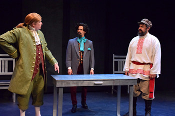 The spark for the play came when Carter discovered that Jefferson, Dickens, and Tolstoy had each put their own spin on the Bible. Jefferson literally cut out the verses he liked from the King James Bible and pasted them into a notebook. Dickens rewrote the gospels in a way that he could read to his children at bedtime. And Tolstoy, never one to do things halfway, taught himself Greek and Hebrew so he could create his own translation of the scriptures. The play begins when this trio, three of the most influential thinkers of their times, find themselves together in a mysterious room immediately after their deaths, pulled from different centuries into the same strange place. Their bewilderment quickly turns into unease as the larger question looms: why are they here? As the men quickly begin sparring over their vastly different views of religion, morality, and the meaning of life, they argue, debate, and clash with one another. When they discover they've all written their own take on the Bible, they wonder if they are meant to combine their individual versions into a single, unified scripture. Or are they being called to account for their past choices, confronted with the ways they failed to live up to the very gospel teachings they held so dear? While the ending could be a little clearer, the script is well written and takes the audience on a lively journey that combines history, theology, and humor. One of the most fascinating aspects of the play is the way Carter weaves in themes of faith, doubt, human imperfection, and the need for meaning. The script reveals a surprising amount of historical detail about each man, from Jefferson's rewriting of the Bible in secret to Dickens' conflicted views of Christianity and Tolstoy's rejection of material wealth for spiritual purpose. These elements not only create tension among the characters but also give audiences a chance to reflect on how questions about morality and belief are just as relevant today as they were centuries ago. The three actors who play Jefferson, Dickens, and Tolstoy make these famous figures feel both real and fascinating to watch. Jefferson is portrayed by J. Kevin Tallent with a cool, intellectual rationality that underscores his devotion to reason and logic. As Dickens, David Lorello comes across as passionate, verbose, and full of theatrical energy, embodying the novelist's flair for both charm and drama, which fits his personality as a storyteller. Ben Rojek as Tolstoy is grounded and intense, radiating a deep sense of faith and conviction. Together, the trio's dynamic chemistry and sharp delivery keep the debates engaging from start to finish. Beau Heckman's direction is tight and crisp with expert staging and movement that ensures the dialogue-heavy script never drags. Angee Lewandowski's costumes and the hair and makeup designs by Shelly Trujillo immediately establish each historical figure. Mark Baris' set design and the projections and lighting design by Stacey Walston add clarity and atmosphere. These elements work together to keep the focus on the language and performances, while also enhancing the play's stark visual appeal. Diane Marie Senffner's dialect coaching has derived impressive and consistent accents from the trio of actors. Discord at Theatre Artists Studio is impressive, combining an intelligent script with exceptional performances and strong creative designs. It's both entertaining and a thought-provoking drama full of substance that invites audiences to wrestle with big questions while enjoying the lively interplay of three brilliant but flawed men. The Gospel According to Thomas Jefferson, Charles Dickens and Count Leo Tolstoy: Discord runs through September 28, 2025, at Theatre Artists Studio, 4848 East Cactus Road, Scottsdale AZ. For tickets and information, please visit www.TheStudioPHX.org or call 602-765-0120. Director: Beau Heckman Cast: |