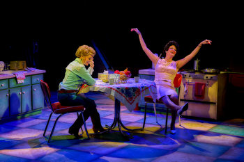 The show tells the true story of Cline's friendship with her devoted fan, Louise Seger. After meeting at a Texas honkytonk in 1961, the two struck up an unlikely but genuine bond that continued through letters, phone calls, and visits. Louise serves as the narrator of the story, guiding the audience through her memories, from the first time she heard the singer's voice on the radio to her tragic death in 1963, while Cline performs many of her greatest hits around Louise's memories of their encounters. The result is part concert and part heartfelt remembrance, giving audiences both the music and the story behind this close, personal relationship. Originally created by Ted Swindley in 1988, Always... Patsy Cline has become a favorite across the country, thanks to its unique structure, emotional authenticity, and the nostalgia it brings due to Cline's impressive number of beloved songs. The show explores themes of friendship, fandom, and the way music can forge lasting human connections. It also highlights Cline's groundbreaking career at a time when female country artists were still fighting for recognition. Cori Cable Kidder's portrayal of Cline is simply superb. Her rich, expressive singing voice is so authentic that if you close your eyes, you might believe you are hearing Cline herself. She delivers classics like "Crazy," "Walkin' After Midnight," and "I Fall to Pieces" with emotional depth and effortless control. Equally impressive is Alaina Beauloye as Louise, whose warm, humorous, and conversational performance anchors the show. She balances the comical moments and sincerity beautifully, making Louise feel genuine and relatable rather than merely a narrator. Both actresses have played these roles in past Hale productions and their performances have grown and deepened over the years. Cambrian James' direction does an excellent job of bringing out both the humor and the heart woven throughout the piece. James' natural pacing allows the story and songs to unfold naturally, giving each moment time to resonate. Lincoln Wright's music direction and the excellent live band capture the nostalgic sound of Cline's era with vibrant arrangements. Molly Hill's costume designs deliver period perfect outfits for both Patsy and Louise, and James' wig designs are equally impressive. Always... Patsy Cline at Hale Centre Theatre is a touching and uplifting theatrical experience. With outstanding performances, heartfelt storytelling, and unforgettable music, this production serves as a loving tribute and a celebration. It reminds us that while Patsy Cline may be gone, her voice and spirit continue to live on. Always... Patsy Cline runs through April 7, 2026, at Hale Centre Theatre, 50 W. Page Avenue, Gilbert AZ. For tickets and information, please visit www.haletheatrearizona.com or call 480-497-1181. Producers and Casting Directors: David and Corrin Dietlein Cast: |