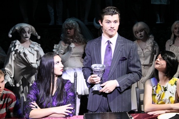 Charles Addams' family appeared in a series of cartoons for The New Yorker magazine and were subsequently brought to life in the iconic 1960s TV show as well as a number of films in the 1990s. A big Broadway musical with an upbeat score with clever lyrics by Andrew Lippa, who also wrote the music, and a book by by Marshall Brickman and Rick Elice filled with an abundance of one-liners, comical sight gags and funny situations opened on Broadway in 2010. While it was a commercial hit, the Broadway show didn't receive a lot of praise and the creators made even more changes for the subsequent national tour. That final version is the one that is being licensed for regional productions. The changes greatly improve the musical, but the plot is still fairly basic and there is the unfortunate addition of an ensemble that is never truly incorporated into the plot; I've yet to see a production where they are truly used effectively. The plot is one we've seen before and also fairly basic. Teenager Wednesday Addams is in love, but with a boy from a "normal" and respectable family, something the Addams' are the furthest from. She tells her father Gomez of the boy, and that they are engaged, and pleads with him not to tell her mother Morticia, afraid of how she'll react. Gomez agrees, even though he is now forced to do something he's never done before: keep something from his wife. The secret causes a rift between the parents that creates confusion and trust issues. Add in the rest of the wild Addams clanUncle Fester, silent butler Lurch, crazy Grandma, and young brother Pugsleyas well as many funny encounters between the Addams' and the straight-laced family of Wednesday's boyfriend Lucas and you have an evening of wacky fun centered around a dinner party the Addamses host for the young couple. Though the musical focuses on all of the members of the Addams family, Gomez and Morticia are most prominent throughout, and Sam Chartier and Alek Rahman do an excellent job of creating characters filled with moments of insanity, love, charm and poignancy. Chartier's crazy accent, which is constant and consistent throughout, is hilarious and his ability to deliver his many wacky one-liners so every joke lands and gets big laughs is exceptional. Chartier also ensures his Gomez is both the doting father and the romantic spouse. Rahman makes Morticia a loving wife and mother but also instills the character with a sense of melancholy that makes you truly understand the pain and confusing she is going through as a woman whose children are growing up and who questions her husband's intentions when she suspects he isn't being truthful with her. They both have lovely singing voices, with Rahman getting some big laughs with the funny lyrics in her "Just Around the Corner" number and Chartier's touching delivery of "Happy/Sad" creating a heartfelt moment between a father and his only daughter who is growing up too fast. The act two tango that Chartier and Rahman dance is excellent, sensual, and also utterly hilarious. As Wednesday, Kayla Dobbs is feisty and charming with a rich singing voice. Grant Roberts is hilarious and appears to be having a blast as Uncle Fester, and Zachary Snyders brings a sweet and charming, completely sly nature to the playful Pugsley. Grace Napoletano voice soars as Lucas' mom Alice and Olivia Palmer's Grandma is a complete hoot. Benji Gerst and KJ Kluge do well as Lucas and his father, and Finn Smith gets laughs as the tall, monosyllabic Lurch with barely opening his mouth. Director Mark-Alan C. Clemente has not only found a talented cast to bring these characters to life but also keeps the pace fast and loose, and the jokes flying, yet he doesn't let the heart of this close-knit family get lost under the zany one-liners. I only wish Clemente were able to find a way to better incorporate those pesky ancestors who show up in the act one opener and stick around for far too long without ever serving any purpose in the plot. He makes a few of them into statues, which is a nice touch, though for an extended sequence in act two, which includes the poignant "Happy /Sad," the sight of the two stoic ancestors threatens to pull the focus from the heartfelt moment that Gomez and Wednesday share. The set from Doran Matson is simple, but it works, and Tamara Treat's costumes are lush and lovely. Darlene Duffy's music direction derives some lovely sounds from the leads and lush harmonies from the ensemble. Katy Callie's choreography, with the added contribution of ballroom dance specialist Devi Hajduk, is fun and lively. While not everything in the musical The Addams Family works, and the plot does require the audience to already have some familiarity with the kooky characters, the score is fun, the book is funny, and the characters are incredibly lovable even though they are also very eccentric, gothic and ghoulish. With a gifted cast and fun direction, Desert Foothills Youth Theater production is a crazy and fun time. The Addams Family at Desert Foothills Theater runs through October 22nd, 2017, at the Cactus Shadows Fine Art Center, 33606 N. 60th Street in Scottsdale AZ. Tickets and information on upcoming shows can be found at www.desertfoothillstheater.org or by calling 480 488-1981. Directed by Mark-Alan C. Clemente Cast: |