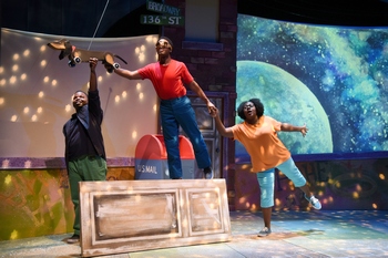 Illustrator and author Keats found success in the early 1960s when his book "The Snowy Day" received the Caldecott Medal for the most distinguished picture book for children for 1963. Over the course of seven books, Keats would return to the African-American boy named Peter, who first appeared in "Snowy Day," and Peter's daily adventures to portray the small but memorable moments that make up a child's life. In addition to "The Snowy Day," the other books that Jerome Hairston adapted to flesh out Peter's world into this moving one-act play are "Whistle for Willie," "Goggles!," and "A Letter to Amy." This play first premiered at Children's Theatre Company in Minneapolis in 2016. Throughout the course of the show we see Peter's various experiences in life. He throws snowballs and makes snow angels and has fun in the freshly fallen snow and plays hide and seek with his friend. We witness the playful adventures he has with his dog Willie and his struggle as he tries to learn to whistle, as well as what happens when he wants to write a letter as a way to invite a special girl to his birthday party. Also, we see how Peter and his friend Archie use their imagination and a pair of goggles they found to explore a wide range of adventures, from motorcycle racing to deep sea diving. Besides the joyous and playful moments Peter and his friends experience, there is also a serious moment when Peter and Archie face the threat of some older kids who want to steal the goggles. While seriously played, this dramatic element is never too scary for young children but it helps bring realism to the play and counter the more humorous and fun moments in the show. Katie McFadzen's skillful and spirited direction and a talented trio of actors allow for the characters of Peter and his friends to be fully realized. Andre Johnson brings a beautiful sense of wonder to Peter, infusing the many situations he has and things that he encounters with a range of emotions from utter joy to frustration, with a warm, winning smile that infuses fun-loving Peter with a neverending cheerfulness. Savannah Alfred is warm and lovable as Peter's mom yet also playful and spunky as Archie. Nathan Alfred plays several roles with ease and his narration is delivered in a straightforward and sincere way that provides a beautiful connection with the audience. All three performers deliver performances that are childlike but also honest and heartfelt. The production plays out on Douglas Clarke's beautiful set that embodies a magical street in an urban neighborhood and also incorporates shadow puppets and projections on three large screens that mirror the memorable illustrations in Keats' books. A few short songs, musical underscoring, and some terrific sound effects from sound designer Christopher Neumeyer, along with Gail Wolfenden-Steib's colorful costumes, combine to create a bright and beautiful world full of wonder. While Childsplay states this show is geared toward younger children, three and up, I'm happy to admit that I had a huge smile on my face throughout. While it provides a good introduction to the wonder of live theatre for children by using theatrical elements to let childhood adventures that youngsters can easily identify with play out it from of them, it also allows grownups to return to the simple wonders of childhood and experience just how enchanting and delightful the small moments in a child's life can be. The Snowy Day and Other Stories by Ezra Jack Keats at Childsplay runs through March 11th, 2018, at the Tempe Center for the Arts, 700 W. Rio Salado Parkway in Tempe, Arizona, with performances on Saturdays at 1 p.m. and 4 p.m. and Sundays at 1 p.m. Tickets are on sale at www.childsplayaz.org or at the Tempe Center for the Arts Box Office 480-350-2822 (ext. 0). Adapted by Jerome Hairston, based on the books by Ezra Jack Keats