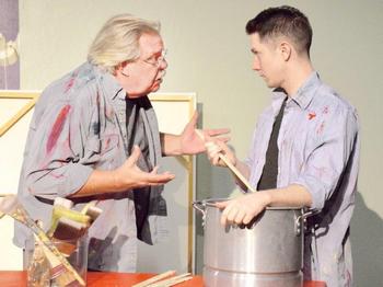 Red is set in Rothko's New York City studio in the late 1950s right after he has been commissioned to create a series of murals to hang on the walls of the Four Seasons Restaurant in New York's Seagram Building. Ken, a young artist in his 20s, has come to work as Rothko's assistant. Over the two-year period that Logan's play covers, Rothko and Ken will work together on the Four Seasons commission as Rothko often preaches his self-centered views to Ken while also belittling and bulling him until the demons in their pasts are revealed. This is a play of many layers. On one hand it is the story of a teacher and a student, on another level it is the story of a man trying to hold on to what he believes art is and how no one truly sees it the way he does, let alone the up and coming crop of "pop" artists like Andy Warhol or other famous artists of the time period of the play, like Jackson Pollock. On another level it shows the shifting balance between the young and the old as the uneducated youth becomes just as knowledgeable as the older teacher. And it is also the tale of a man with many demons who talks about his eventual suicide as if that is the only way his life could possibly end. Interestingly, Rothko was a painter of layers, with thin layers of paint layered on top of other thin layers in other colors, so the colors would sometimes show through the top layers. Logan has expertly created a play in line with the way Rothko created his art. Rothko is portrayed by Michael Fleck, a powerful force of nature in the role delivering a thoughtful, nuanced and fully fleshed out performance. Fleck expertly gets across how Rothko is a moody, agitated, pompous, egotistical and pretentious man, full of himself, self-centered, self-absorbed, and set in his ways but truly afraid of the new crop of younger artists that are now on the art scene. Sure, he might toss off these individuals with contempt and as having nothing in common with himself, but through Fleck's excellent portrayal, we see over the course of the play that there is also a fear of what's "hot" and trendy in Rothko's, which makes him despise these new artists. At the time of the play, Rothko is at the point in his life when he thinks that basically no one except himself is worthy of viewing, let alone owning, one of his paintings. He believes everyone simply views his paintings as a commodity and that no one truly sees either the tragedy and the beauty in his work. Fleck is riveting in the role. Ken, played by Quinn Johnson, is at first apprehensive and in awe of Rothko, but over the course of the 90-minute, one act play, and the two-year period the play covers, he begins to question Rothko's ideas of what a painter is and what paintings stand for, and he eventually strikes back at Rothko verbally in an emotional monologue toward the end of the play. That speech, handled expertly by Johnson, shows Rothko how wrong his views are as well as how the younger up and coming artists might actually know more than he does. It is at the end of this moment when Rothko truly sees Ken as a person and not just a nameless assistant. Johnson's ability to show the vast changes his character makes and the strength he finds is incredibly well done. With only one small quibble, Carol MacLeod's direction is excellent. She makes effective use of the realistic art studio set by Deborah Boehm, with the movement of Fleck and Johnson adding a natural sense of these two men who pace and prance around the set almost as if they are a hunter and his prey. MacLeod's direction ensures that both actors' performances are infused with passion, not only in the way they inhibit the characters but also in the one well-choreographed scene where they are collectively painting the base layer on a large canvas. And while Fleck's performance of Rothko is layered, it is really Johnson whose character grows the most over the play. Quiet, apprehensive, and unsure of himself in the beginning he grows into someone of self-assurance and confidence. Since the play is set over two years, it requires costume changes for each character at each of the four scene changes. Unfortunately, the lighting design by Stacey Walston, which is excellent during the scenes themselves, and direction of these scene changes by MacLeod could be better. There is much talk about light in the play, so having most of the scenes end with both men walking off the stage in almost full light and not having the scenes end with black outs seems a bit strange. If you didn't know the scene had ended you might think the two had simply stepped off stage for a brief moment. With just that one small shortcoming, Red at Theatre Artists Studio is still incredibly rewarding. MacLeod, Fleck and Johnson are to be commended for providing a thrilling production of Logan's excellent play. Red, through March 25, 2018, at Theatre Artists Studio, at 4848 East Cactus Road in Scottsdale CA. Tickets are on sale at www.TheStudioPHX.org or by calling 602-765-0120. Director: Carol MacLeod Cast: |