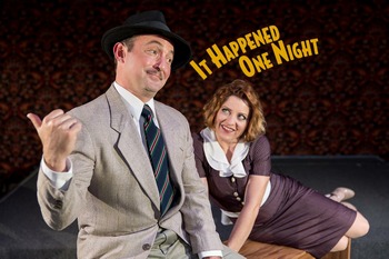 Set during the Depression, the story follows the wild and independent heiress Ellie Andrews, who runs away from her father and rejects her wealthy lifestyle to spite him for not approving of her free spirit and her playboy fiancé, King Westley. She boards a bus bound for New York City to be with Westley and ends up seated next to Peter Warne, a grumpy, indifferent, and recently fired newspaper reporter. Through a series of mishaps, the mismatched couple, who come from very different worlds, find themselves thrown together as they travel via bus, car, and hitchhiking, even sharing rooms due to their shortness of funds, as they both try to get to New York City. Ellie's father is trying to find her and even offers reward money for any tips to her whereabouts. Peter discovers who Ellie is and, even though he thinks she is just a spoiled brat, he agrees to help her. But is he really helping her because he likes her or because he's just out for the reward money? Katherine Martin and Harmon Swartz do incredibly well as Ellie and Peter in creating two individuals who are independent, stubborn, and completely mismatched. They both navigate their way skillfully through the abundance of fast-paced dialogue and the non-stop verbal battles of wit that Riskin and Capra crafted. Swartz's expert facial expressions and charm are superb in portraying how Peter is a fast-thinking man who adlibs his way through any bind or bad situation thrown at him. Martin is steadfast but also warm as Ellie, and the connection the two create as these lovable characters makes it understandable why they fall for each other, even though they are almost complete opposites. Jim Coates is excellent at Ellie's father. From his stage presence and line delivery it's clear that, while he may meddle in his daughter's business, he truly loves her. Zach Parrish is hilarious as two larger than life individuals, Ellie's fiancé and a man she meets on the bus. In smaller parts, Jackie Horn is both bossy and compassionate as Peter's editor, and Tom Endicott is a hoot in about a half dozen humorous, caricature parts. It Happened One Night features dozens of locations, including the interior of several busses, a plane, and hotel rooms. Director Erica Parrish does a very good job in bringing them all to life on the intimate Don Bluth stage, with whimsically staged musical scene-changes featuring the ensemble dancing the scenic and prop elements on and off stage. Parrish's direction is swift and smart and she does well in using the raised back platform to portray the seat on the bus where Ellie and Peter sit as well as one of the beds in the hotel room where they first sleep, in order for the whole audience to be able to see these important key moments in the show. Corinne Hawkins' costumes offer a wide range of outfits, including a beautiful beaded gown for Ellie and period outfits for the ensemble. Parrish and Roger McKay's sound design features many fine effects that help bring a sense of realism to the many scenes set on the road. With superb leads, fine creative elements, and clear and concise direction, It Happened One Night is a thoroughly enjoyable and incredibly fun theatrical adaptation of this classic Oscar winning comedy. It Happened One Night, through April 28, 2018, at the Don Bluth Front Row Theatre, 8670 E. Shea Boulevard, Suite 103 in Scottsdale AZ. For more information on this production or to order tickets, go to www.donbluthfrontrowtheatre.com or call 480 314-0841. Directed by Erica Parrish Cast: |
