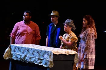 While the characters of "the Heights" may be mostly Latino, it doesn't matter what your background or ethnicity is, as Miranda and Hudes' story features identifiable individuals and universal themes that resonate. Set over three days one summer around the July 4th holiday in the Washington Heights neighborhood in northern Manhattan, the plot centers on bodega owner Usnavi, who dreams of winning the lottery one day so he can open a bar in his homeland, the Dominican Republic. Usnavi secretly longs for Vanessa, who works at the beauty salon next door, while across the street from Usnavi's shop is a taxi dispatch company where Usnavi's friend Benny works. The taxi company is run by Kevin and Camila, whose daughter Nina has just returned home from college with some surprising news. Usnavi also looks after "Abuela" Claudia, the aging Cuban woman who raised him after the death of his parents, and his younger cousin Sonny, as the entire group aspire to build better lives for themselves. The musical is full of realistic characters who have both strengths and shortcomings, which makes you care for them even more as they struggle in dealing with the situations life has thrown at them. Miranda's wide-ranging score is infused with hip-hop, salsa and merengue, along with some beautiful ballads and romantic duets that are in a more traditional musical theatre style. Like Hamilton, Miranda also includes some rap, mostly for Usnavi's narration, along with lyrics that are impressive in their humor, creativity, and incredible rhyme structure. Hudes' book is succinct and swift and perfectly complements Miranda's lyrics to quickly create identifiable characters. Under Ricky Araiza's impressive direction, DFT's cast is more than capable of portraying the pain, dreams, pressures and joys of this courageous group of people. With a beautiful sense of compassion and a clear connection to all of his castmates, Johnny Ramirez makes a perfect Usnavi. Sonia Rodriguez Wood is superb as Abuela. Her rich singing voice and empathetic portrayal of this beloved character is spot-on perfect and a huge crowd pleaser. Issie Ocampo and Reginald Graham have amazing voices that soar on Nina and Benny's many songs. Ocampo is perfect in showing how her character doesn't quite know how to deal with a recent setback and how she feels lost and directionless, while Graham's deep, soulful voice and the kindness he instills in Benny immediately make you see why Nina would fall for him. Gutsy and vibrant, Amanda Glenn brings the right balance between sex appeal and uncertainty to Vanessa, better than I've witnessed in past productions. As Nina's parents, Damon J. Bolling and Ashley Kerin Martinez are excellent, with perfect acting choices and a deep sense of care and a beautiful connection to each other and to Ocampo. Eric Williams adds plenty of humor as Sonny, and Monica Hernandez Bollt is hilarious as the gossiping hair salon owner. Saul Angulo adds some impressive dance moves as Graffiti Pete. Araiza's direction of the cast adds not only a superb realness to the show but also a vibrant pulse and a big heart that makes the emotional moments resonate. His decision to stage this show in the round (with the exceptional orchestra placed on one end of the rectangular shaped space) works very well with just a couple of drawbacks. With string lights and flags strung overhead, Araiza employs just two milk crates, a couple of stools, a rolling cart, and a ladder to portray the locales. While the closeness of the actors adds an intimacy and connection that a traditional thrust stage environment doesn't always allow, the lack of any major set pieces (and very few props) means that we don't get a clear understanding of the three main locations in the show, or how the shops are all right next door to each other. While this minimalistic approach adds a nice imaginary, theatrical component to the show, it doesn't quite achieve the sense of a few key moments, like when Usnavi encounters a slight setback at his store and when something is revealed at the end of the show that is supposed to be on the grate of his shop, but here resembles a simple window shade in a nondescript location. Fortunately, the nine-piece orchestra, under the combined musical direction of Mario Yniquez and Titus Kautz, is smoking hot, the combination of Laura Berry's superb lighting and Tamara Treat's excellent, character appropriate costume designs, plus the great vocals from the cast help smooth over the lack of set elements. Berry's lighting for a fireworks scene is stunning and Chelsea Neiss' choreography is exuberant and celebratory. In the Heights is a musical that expertly portrays the sense of community exhibited by a large group of courageous neighbors. Desert Foothills Theater's production has very good direction, lovely creative elements, and an excellent cast who beautifully portray this group of joyous and joyful characters. Even though I wished there were a slightly more refined scenic design, the end result is a celebratory production of this Tony winning musical that beautifully shows how a group of mostly non-related individuals help each other as they attempt to dream and build a better future for themselves and their neighborhood. In the Heights, through April 15th, 2018, at Desert Foothills Theater, Cactus Shadows Fine Art Center, 33606 N. 60th Street, Scottsdale AZ. Tickets and information on upcoming shows can be found at www.desertfoothillstheater.org or by calling 480 488-1981. Directed by Ricky Araiza Cast: *Member, Actors' Equity Association |
