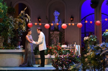 The play is set in the garden conservatory of Madame Desmortes' French chateau where a ball is about to take place. Desmortes has two twin nephews, Hugo and Frederic, who couldn't be more different. Frederic is engaged to Diana, a heartless heiress, so Hugo invites the poor but beautiful ballerina Isabelle to the ball and dresses her up in an attempt to draw Frederic to her and away from Diana. However, Isabelle's mother has come along for the journey and when she sees Madame Desmortes' companion Capulet and recognizes her as a girl she grew up with, she tells her of the plan. Also, Isabelle is more drawn to Hugo than Frederic. Will Hugo's scheme be spoiled? Add in an abundance of fun supporting comical characters and you have a witty, humorous and charmingly romantic comedy. Director Michael Kary gets rich comical performances from his cast with none ever crossing too far over into delivering broad caricatures of these mostly comical archetypes. He instills not only big doses of comedy and romance into his staging but also plenty of dance and movement in his upbeat and fun scene changes. Brandon Brown does exceedingly well as both Hugo and Frederic. As Hugo, Brown is brave, bold and fearless, while as Frederic, he is shy, sensitive and innocent. The fact the Brown has to constantly shift between the two parts, sometimes within a few seconds, and that he creates two very different characters, is a huge achievement. Christina McSheffrey is equally as good as Isabelle. Somewhat timid when she first appears, McSheffrey does well to show how Isabelle at first is swept up in playing dress up and being the belle of the ball but quickly realizes the shortcomings of being Hugo's puppet and plaything. McSheffrey delivers a beautiful and touching performance. As Madam Desmortes, Tarnim Bybee is a commanding and controlling presence, ruling with an iron fist from her wheelchair. Her biting delivery of the character's wittier lines is nicely countered by her ability to portray Desmortes' positive aspects in a completely sincere way. Kaitlyn Johnson is appropriately conniving and bitchy as Diana. Her cat fight with Isabelle is expertly played and staged. Megan Sutton and Brenda Batres are hilarious as Isabelle's mother and Capulet, respectively, and Gustavo Flores instills Diana's father Messerschmann with pathos and a hint of pain. As Joshua, the respectful butler who has to manage everything, Kaleb Burris is both solemn and sure of himself. There is also good comical support from Micah Larsen, Trustin Adams, and Allye Moyer in a few smaller parts. GCU's creative aspects are simply sublime. William H. Symington's set evokes a richly detailed, marble-floored conservatory full of exotic plants while Nola Yergen's costumes are stunning. The lighting from Claude Pensis is sumptuous as are Christen McGrath's hair and make-up designs. Full of both cynicism and sentimentality, Ring Round the Moon is a fun play that include a heightened mix of farce and romance as well as a comedy of manners. Grand Canyon University's production is infused with style and wit and a cast who deliver on the many fun, almost farcical, moments. Grand Canyon University's College of Fine Arts and Production's Ring Round the Moon, through September 2, 2018, at Grand Canyon University's Ethington Theatre, 3300 W. Camelback Road, Phoenix AZ. Ticket and performance information for their upcoming productions can be found at www.gcu.edu/college-of-fine-arts-and-production/ethington-theatre.php or by calling 602-639-8880. Written by Jean Anouilh, adapted by Christopher Fry Cast: |