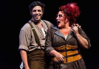 Set in 19th century London, with dark wit and an incredibly lush score, Sweeney Todd tells the tale of a barber who was unjustly exiled and seeks revenge against Judge Turpin, the man who falsely imprisoned him while stealing his young wife Lucy and their infant child Johanna away. Fifteen years later, when Todd returns to London, he discovers that Turpin now has plans to marry the grown-up Johanna and that Lucy was driven to suicide. With the assistance of Mrs. Lovett, the woman who runs the seedy meat pie bakeshop under the room where he used to live, Todd's thirst for blood grows. As he waits to get revenge against Turpin, Todd and Lovett find a most creative, and profitable, way to dispose of the bodies whose throats Todd has slit in his barber chair as he practices for his moment alone with the Judge. Sondheim has said he got the idea for this show when he saw Christopher Bond's play adaptation of the classic Todd tale one evening in London and thought it could make a perfectly dark, bold, and bloody musical. His decision to include elements of Grand Guignol theater in his black comedy was a stroke of genius and the result is a masterpiece. In addition to Sondheim's powerful and lyrical score, which features repetitive themes, lush musical moments, soaring ballads, and lyrics with incredibly witty wordplay, Wheeler's book doesn't have any unnecessary moments with short scenes and just enough dialogue, which combine with the perfect lyrics to make us understand each character, and their actions, implicitly. Director Kiel Klaphake has mounted a beautiful, atmospheric, and swift moving production with a cast more than up to the challenge of tackling one of Sondheim's most challenging scores. The characters run the gamut of emotions from joy to despair, and Klaphake's direction ensures the cast hit the right notes without ever making any of the scarier moments unintentionally humorous, something not always easy to achieve in a black comedy. As Sweeney, Tony Edgerton is sensational. He has the right element of menace that Todd needs to exhibit in order to truly feel dangerous to the audience while also incorporating a deep sense of brooding, a calculating mindset, despair, obsession, moodiness, and also an amount of charm and humor. His pure, rich and clear voice delivers soaring notes on every song. Cassandra Klaphake is appropriately bold and brassy as Mrs. Lovett. In probably the best role I've seen her cast, Klaphake infuses Lovett with a no-nonsense, matter of fact delivery in every line of dialogue and lyric. In her portrayal, we see that this is a woman who knows what she wants and what she needs to do to get it. Klaphake's expressive eyes and warm gestures help to mask Lovett's true calculating and plotting nature. Her strong vocals deliver. Together, Edgerton and Klaphake bring a sense of joyful excitement and relish to every move they make. Their performance of the crowd-pleasing "A Little Priest," which sets up the action of act two, is one of the best and most natural versions of the song I've seen. Instead of just a song where actors hit their marks and get the lyrics right, you actually feel it is a natural progression of a conversation, from a thought Lovett has that sparks further fleshing out by Todd, as the song builds with witty lyrics until it soars to its comically delightful ending. In the supporting cast, Ryan Michael Crimmins does very well as Anthony, the young sailor who is enamored with Sweeney's daughter Johanna, and Trisha Hart Ditsworth's portrayal of Johanna is clear and strong. Their vocals are bright, lively and lush. With a strong and firm sense of authority, Steve McCoy is appropriately commanding and self-righteous as the lecherous Judge Turpin, and Michael O'Brien instills Turpin's right-hand man Beadle Bamford with a light air, though you never doubt that underneath is a boding and strong threat of danger. Meggie Siegrist is excellent as the melancholy and funny half-crazed Beggar Woman. Ben Stasny is bright and cunning as Pirelli, a barber who has a run in with Todd, while Tristan Klaphake's sweet vocals and boyish charms infuse Tobias, Pirelli's assistant, with a youthful sense of curiosity. The song that Tristan shares with his mother Cassandra, as Lovett, "Not While I'm Around," about the need to protect the ones you love, takes on an even deeper meaning when sung by this real life parent and child. Kiel Klaphake's direction makes great use of Aaron Sheckler's superb two-story set to ensure the sweeping nature of the story resonates while also allowing the more personal moments to have poignancy. Musical director James May achieves an amazing, rich and full sound from the small orchestra and strong, powerful harmonies from the cast. Sheckler's set includes a large, rotating, angular two-story structure for Todd's barber shop and Lovett's pie shop as well as two raised areas where other action takes place. When combined with Nate Wheatley's stunning lighting, full of deep shadows, bold and stark colors, and a rich depth, it creates some incredibly impressive imagery. With vibrant fabrics and deep colors, Kathleen Trott's costumes are simply excellent. Sweeney Todd has a sophisticated and challenging score full of sweeping music and a book that includes humorous moments of black comedy to tell the moving story of a madman. Arizona Broadway Theatre's production is eerily atmospheric, gorgeous, hauntingly beautiful, and chilling with an excellent cast and solid direction that deliver extremely full, rich and rewarding performances. The end result is a deliciously tasty and satisfyingly macabre treat. Sweeney Todd, the Demon Barber of Fleet Street, through September 16, 2018, at the Herberger Theater Center, 222 E. Monroe St., Phoenix AZ. Tickets can be ordered at www.herbergertheater.org or by calling 602-252-8497. Book by Hugh Wheeler Cast: *Member, Actors' Equity Association |