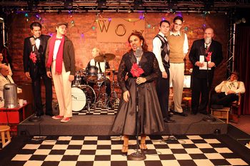 It's December 21, 1942, in New York City and it's just minutes until the airtime of the live radio broadcast "The Mutual Manhattan Variety Cavalcade" on WOV Radio. As the play begins, the cast of the show make their way into the studio from the snowy and cold weather outside. Tempers flare and shenanigans ensue in the backstage area as preparations are finalized for the live hour-long broadcast that features some beloved American songbook tunes, comedy bits, and even a few fun live commercials. The 1940's Radio Hour features a large group of characters, and director Gary Caswell has assembled a talented cast who deliver winning performances. While a few of the singing voices are just OK, which is the only downside I see in this production, everyone creates unique characters and they form a tight ensemble with their fellow castmates. Caswell's direction creates a fun and frantic environment and also ensures the cast remain true to the style of the 1940s in their characterizations, which beautifully evokes the nostalgic charm of the period. Jeff Huffman is very good as the frazzled general manager of the station who also serves as the radio broadcast's announcer, while Frank Aaron is charming as Pops, the show's doorman who also takes bets over the radio station's phone on the side. Harold LeBoyer is excellent as the show's sound effects man. The women in the cast include Rebecca Whaley, who is good as the show's main female vocalist Ann Collier; Molly Jisa, who exhibits a perfect vacant air as the bubble-headed Ginger Brooks; BreAwna Harpe, who is both quick-witted and sultry as blues singer Geneva Lee Brown; and Becca Webb, who is simply adorable as the youngster in the group, the Coca-Cola swigging, bobbysoxer Connie Miller. The men include Alex Gonzales, who is appropriately cocky and slightly sad as star singer Johnny, who keeps drinking throughout the broadcast and claims he's heading to Hollywood the next day. As Neal Tilden, Sam Johnson's expert comic timing and clowning abilities get big laughs and his solo of "Blue Moon" is superbly done. Cameron Swindler delivers a charming solo of "You Go to My Head" as B.J Gibson, and George Piccininni is funny as the eager, young delivery boy Wally Ferguson, who yearns to be in front of the microphone. Other highlights include Jisa's sultry "Eskimo Pie" commercial and her bluesy "Blues in the Night" as well as the group numbers "Boogie Woogie Bugle Boy" and "Strike Up the Band," which features a fun tap dance by Webb and Swindler. (Harpe and Webb provide the spirited choreography in the show.) Many other familiar tunes populate the show, including "Have Yourself a Merry Little Christmas," "Kalamazoo," and "Strike Up the Band." There are several humorous commercials as well as a hilarious abridged version of "A Christmas Carol." Caswell's set design evokes a charming old-time radio studio with a few Christmas lights and decorations to set the time of year, while Corinne Hawkins' costumes and the period make-up and hair styles beautifully suggest the 1940s. The two-piece band, with Joe Boussard on piano and Phil Paski on drums, delivers expert accompaniment in a big band style under Boussard's keen music direction. While the plot of The 1940's Radio Hour may be slight, there isn't a shortage of music, comedy and joy in Don Bluth Front Row Theatre's charming and winning, period-perfect production that lovingly takes you back to the bygone days of the '40s. The 1940's Radio Hour, through November 24, 2018, at the Don Bluth Front Row Theatre, at 8670 E. Shea Boulevard, Suite 103, Scottsdale AZ. For more information on this production or to order tickets, go to www.donbluthfrontrowtheatre.com or call 480-314-0841. Directed by Gary