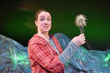 The play centers on the 8-year-old dreamer Sheila and her group of friends who one summer, with "nothing but time and imagination" on their hands, build a castle fort treehouse out of a pile of junk they find behind Sheila's house. When Sheila's mother goes out of town and leaves Sheila alone for one night, the kids, including Dennis who is the oldest and strongest, the clever, wise and helpful Leon, and the twins who are shy and eager, decide to spend the night in their junk fort. But as the sun goes down, they find themselves face to face with a human-size coyote wearing sunglasses and cowboy boots. That encounter sets them off on a high-stakes adventure where the youngsters learn things about themselves and about the world around them. Coble has written a fun adventure story that uses a traditional storytelling method to bring to life both realistic characters and the fantasy-filled adventures they have. There are numerous twists and turns in the script so you never quite know where the story is going, which is good. Having the piece performed by just one person also brings a beautiful sense of theatricality to the show. While the environmental message Coble brings out about three quarters of the way into the show may seem slightly heavy handed, and also includes some touches that are slightly scary for younger theatergoers, the way he uses only children and animals to get his message across is very effective. Kate Haas is terrific at bringing the story vibrantly to life with her expert storytelling skills, along with her keen ability to use different voices and body gestures to portray the numerous characters in the script. Under Debra K. Stevens' skilled direction, Haas pulls you into the adventure and keeps you intrigued and on the edge of your seat for the entire 60-minute show. With expert use of Jeff Thomson's imaginative scenic design, which includes a wide range of pieces of junk to portray everything in the show from the kids to the fort they build and the truck the coyote drives, director Stevens has brought to life, literally out of junk, in-depth story and richly detailed characters. Cody Soper's superb lighting beautifully portrays the heat of the hot, New Mexico summer day as well as the glow of the setting sun and the deep, dark black of night. Christopher Neumeyer's sound effects and original music add plenty of atmosphere to the production. With an excellent performance by Kate Haas and superb creative elements, The Girl Who Swallowed a Cactus is yet another successful theatrical endeavor at Childsplay. It is a show that will take children of all ages on a fun and imaginative journey while also giving you food for thought on how our world is one that both humans and animals must learn to share. Childsplay's The Girl Who Swallowed a Cactus, through November 18, 2018, at the Herberger Theater Center, 222 East Monroe St., Phoenix AZ. Performances are on Saturdays at 1 pm and 4 pm and Sundays at 1 pm. For tickets and information, visit www.childsplayaz.org or call the Herberger box office at 602-254-7399. Written by Eric Coble Cast: |