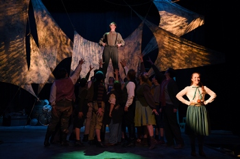 Written by Rick Elice and based on the children's novel of the same name by Dave Barry and Ridley Pearson, this prequel to "Peter Pan" shows us how an unnamed orphan became the famous boy who wouldn't grow up. It not only gives us the backstory for how Peter Pan came to be and got his name, but also humorously shows us how Captain Hook lost his hand, how the crocodile got the clock in his belly, and how Tinkerbell came to life. Directed by Michael Kary, and with a cast and creative team composed entirely of students, the production featured GCU's talented cast playing multiple parts with ease, including several who humorously portrayed roles of the opposite sex. The production used minimal sets with just a few pieces of rope, some planks of wood, some scaffolding, and a few prop pieces, along with the imagination of every audience member, to bring the story vibrantly to life. The three leads were exceptional. Isaac O'Farrell evoked a beautiful sense of a lost boy who was both naïve and unsure of himself at first but blossoms throughout the piece to become a natural leader. With an impeccable English accent, McKenna Kollman was appropriately bossy, spirited, feisty, and completely sure of herself as the young authoritative girl who befriends Peter and his fellow lost boys and who has no problem facing danger head on. As Black Stache, the Captain Hook equivalent, Megan Sutton had a blast wringing every nuance from every small comic gag and appeared to relish playing this larger than life villain. In supporting parts, Brandon Brown and Mackenzie Reppy were full of childlike fascination, fear, courage and humor as Peter's fellow two orphan friends, Prentiss and Ted. Both Ryan Ardelt, who played Molly's maid Mrs. Bumbrake, and Devin Erwert, who played Black Stache's right hand Smee, were appropriately humorous and charming. Micah Larsen infused the part of Molly's father, Lord Aster, with an abundance of love and strength, and Emily Sheppard was quite touching, and fun, as Teacher, a mermaid who imparts some words of wisdom. The simple yet highly imaginative set design by Keeli Rodriguez featured large pieces of tarp suggestive of the sails of a ship, which were used to effectively display some shadow imagery through projections, plus a few other small set elements that, in combination with the lighting design by Rachel Schumacher, were simply superb in the use of shadows and vibrant colors, beautifully suggesting the many locales in the show. Costume designer Trustin Adams created some evocative clothing, including hilarious and exceptional mermaid designs. Peter and the Starcatcher includes music and a few songs written by Wayne Barker which music director Melissa Landes and the small band delivered expertly. While Peter and the Starcatcher is a very good play, it does run a bit long and the opening is a somewhat muddy and unfocused, which can make it confusing at first. Also, GCU opted to downplay a moment in the second act when Black Stache loses his hand that other productions that I've seen have turned into a classic and comical vaudevillian moment. While that didn't detract from the production, and if you've never seen this show you wouldn't have noticed its omission, I still felt it was a shortcoming. When you read a book that is set in a fantasy world, it requires you to use your imagination. Peter and the Starcatcher is a beautiful play that allows an audience's imagination to become almost a supporting character and, with a talented cast and sublime creative aspects, GCU's production was an inspired evening of theatrical magic. Peter and the Starcatcher ran November 16 - 25, 2018, at Grand Canyon University's Ethington Theatre, 3300 W. Camelback Road, Phoenix AZ. Ticket and performance information for their upcoming productions can be found at events.gcu.edu/events/category/ethington-theatre/ or by calling 602-639-8880. Director / Fight Choreographer: Michael Kary Cast: |