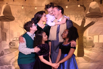 For those unfamiliar with the film or the story, it tells the tale of George Bailey, an idealistic and self-sacrificing man, and Clarence, an angel who comes to George's rescue one Christmas Eve when George considers ending his life. The film is beloved due to the heartfelt performance of Jimmy Stewart and the stellar direction of Frank Capra, both of whom were nominated for Academy Awards. In order to make the well-known story succeed on stage, there must be an actor skilled enough to create a compassionate portrayal of the richly layered character of George without being too much of a carbon copy of Stewart's cherished performance, and also a director who can navigate the multiple locations, time periods, and dozens of characters of the show with ease. Fortunately, Harmon Swartz is superb as George, and Cheryl Schaar is more than well equipped enough to derive superb performances from her leads and many of the supporting cast and able to stage the production effectively on the small Don Bluth stage. The entire cast deliver performances that form an homage to the film actors' portrayals of their characters while also adding some effective original touches of their own. Schwartz is simply excellent as the kindhearted, hard-working, self-sacrificing George who has always longed for a larger life outside of his small town of Bedford Falls, New York, but constantly finds the demands of his family and the continued need to help those around him are keeping from his dreams. Schwartz has the right balance of a positive outlook on life with the shades of darkness that appear when desperation overtakes George and he thinks all is lost. It is a deeply moving portrayal full of nuance, depth and believability and one of the best I've seen on a Phoenix stage this season. As Mary, the woman George is in love with, Erica Parrish is simply lovely. She evokes the appropriate amount of warmth and sincerity in an engaging and effective performance. One of my favorite moments in the film is the phone call that Mary and George share which is the turning point when they realize how much they love each other, and Parrish and Schwartz, under Schaar's clear direction, make this a beautiful and poignant scene. Tom Endicott is full of joy, honesty, and an uplifting and spirited sense of playfulness as Clarence, the angel who just wants to earn his wings. Jim Coates as Potter, the villain of the story who has a cold, calculating heart, creates a multi-dimensional character infused with realism. In smaller parts, John Mueller is great as George's bumbling Uncle Billy; Michelle Herro is fine in the somewhat thankless part of the angel who helps Clarence navigate his way through George's life; George Gonzalez is warm and bright as both George's brother Harry and his best friend Sam Wainwright; Tenea Hudson and Dan Marburger are quite good as several characters, including George's parents; and Rachel Weiss is appropriately flirty as Violet, the small-town girl who, like George, dreams to escape. Also, Isaac Greenland is very good as the young George and, later, George's son Pete. While this production is slightly abridged from the film screenplay, it still manages to present all of the memorable scenes from the film, which is something not that easy to do on the small Don Bluth stage. Director Cheryl Schaar uses musically underscored scene changes, some effective sound effects, and a large, game cast to bring all of the notable moments and colorful characters from the film to vibrant life. Though there are limited set elements, the beautiful black and white backdrop of a snow-covered street in Bedford Falls that Bluth painted, and just a few small set pieces, with the combination of effective lighting by Judy Starr, Schaar and Parrish, quickly set the location of each scene. Corinne Hawkins' costumes are quite good. The small theatre space also provides an intimacy that is almost as effective as what you'd get from the emotion derived from close-ups in film and something that would be lost in a larger venue. With a talented cast and sure-footed direction, Don Bluth Front Row Theatre's production of this well-known film is both humorous and heartwarming. It shows that the story of George Bailey and the profound impact he had on all of those he touched during his wonderful life makes for a very effective and moving theatrical adaptation. It's a Wonderful Life, through December 29, 2018, at the Don Bluth Front Row Theatre, at 8670 E. Shea Boulevard, Suite 103, Scottsdale AZ. For more information on this production or to order tickets, go to www.donbluthfrontrowtheatre.com or call 480-314-0841. Directed by