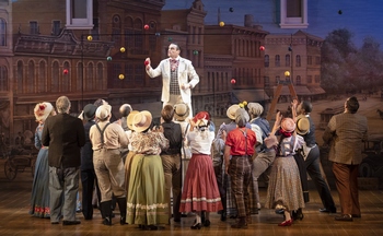 Featuring such well-known tunes as "76 Trombones," "Trouble," and "My White Knight," and a well-written comical script full of rich, believable characters, Meredith Willson's score and book for The Music Man are exceptional. The plot tells the story of the inhabitants of River City, a small town in 1912 Iowa, where traveling salesman Harold Hill, a "professor" of music, convinces the town's parents to pay him for instruments and music lessons for their "troubled" boys. However, as we know from almost the very beginning of the show, Hill has no music background and plans to skip town with the parent's hard-earned cash before teaching the children anything about music. Unlike almost the entire town, the highly suspicious town librarian Marian Paroo doesn't fall for Hill's con act and makes it her mission to prove his lack of credibility. But when Hill is able to bring Marian's younger and extremely shy brother Winthrop out of his shell, she finds herself at a crossroads and realizes that she just might be falling in love with the con man himself. Is Hill actually in love with Marian too, or is he scheming her along with the town? Director David Ivers, who recently announced he was stepping down from his role as ATC's Artistic Director at the end of this season, delivers a fast-paced production with a cast who all do well in creating realistic characters. Bill English exudes charm with appropriately seedy undertones as the fast-talking Hill, making the audience always suspicious of his intentions. I've seen numerous other productions of this musical in which the actor playing Hill is either too charming or too much of a shyster, but English gets the balance of the two just right. He also has a beautiful, bright and clear singing voice that excels on his many songs, including an exceptional performance of the fast-paced "Trouble." With well-delivered cynicism displayed in her discerning facial expressions and biting quips, Manna Nichols is quite good as the doubting Marian. English and Nichols also create a believable romantic duo. In the supporting cast, Danny Scheie is simply hilarious as the mistrusting Mayor Shinn. His bizarre phrasing and enunciation and all-around excellent comic timing bring a truly unique and fresh take to this character. John Plumpis is fine as Hill's former con-man friend Marcellus. Peggy O'Connell is full of fire with a firm stage presence as Marian's mother Mrs. Paroo. As the four men who find joy once Hill turns them into the town's barbershop quartet, Lawrence E. Street, Jay Garcia, George Slotin and James Zannelli provide exceptional and rich harmonies. The town is full of busy-body women of which Leslie Alexander, Kara Mikula and Chanel Bragg do the best in creating unique characters and instilling them with fun pops of humor. Carly Natalia Grossman shines as the mayor's daughter, and Kyle Coffman provides acrobatic dance moves as the bad boy of the town, Tommy Djilas. Choreographer Jaclyn Miller has crafted some fun, inspired and effective dance steps for the production. Ivers and Miller work well together to ensure the ensemble is used effectively in the larger production numbers, with the dance movement always seamlessly in line with and growing organically out of the stage action. The opening number, "Rock Island," and "Marian the Librarian" are exceptionally done. Scott Pask's set design features a realistic postcard image of River City's Main Street across the back wall of the stage and a few large set pieces and drops that quickly set the location of each scene. Margaret Neville's costume designs are period-centric and perfect, with a non-stop parade of turn of the century colors and fabrics. Lighting designer Philip S. Rosenberg ensures each scene looks beautiful and Gregg Coffin's music direction derives some gorgeous sounds from the large orchestra and cast. With a good cast and creative elements, and effective choreography and direction, Arizona Theatre Company's production of The Music Man is a fine, fun-filled presentation of this classic show. Arizona Theatre Company's The Music Man, through January 27, 2019, at the Herberger Theater Center, 222 E. Monroe Street, Phoenix AZ. Tickets can be purchased at www.arizonatheatre.org or by calling 602-2566995. Director: David Ivers Cast: *Members of Actors' Equity Association, the Union of Professional Actors and Stage Managers in the United States. |