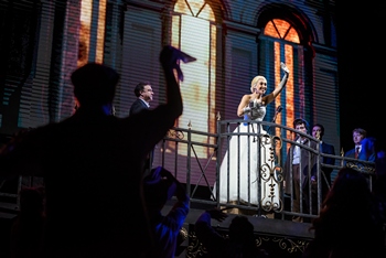 Evita focuses on the life of Eva Duarte, a poor girl in Argentina who ended up as Argentina's first lady by calculating, scheming, and even sleeping her way to the top. Narrated by Che, a young man who has no respect for Eva and Juan Perón's devious and sometimes illegal ways, the musical provides an interesting history lesson of the highs and lows of politics and also an intriguing story of a poor young woman who gets caught up in the struggle for fame and success. The driving, sung-through pop/rock score has much to love, with Lloyd Webber's tango-infused music and Rice's succinct lyrics. However, Rice's book leaves out some plot points, forcing the audience to fill in a few gaps. While we know from the opening scene that Eva dies at a young age, which makes her rise to power almost immediately followed by her death in such a short time both intriguing and sad, the musical's ending isn't that strong. Director and choreographer Andy Ferrara has done a fairly good job of finding a cast who bring passion and energy to their roles. His choreography pulsates with the beat, heat and energy that echo the drive to fame and power we see in Eva and Perón and is well danced by the cast. Bruce Brockman's scenic design may be fairly simple, with just a permanent second-level walkway with a moving staircase and a few smaller set pieces, but with the addition of Mark Ciglar's video elements we are quickly whisked away to the many locations in the show. The use of archive photos and video gives this production the added element of authenticity that I've never experienced before, even more so than the recent Broadway revival and tour which also used some archival elements. Seeing actual photos and newsreel footage of Eva and Juan and the people of Argentina grounds this production in reality. Chad Bonaker's lighting design adds emotion and drama through the use of shadows and deep colors. Ciglar's video designs combined with Brockman's sets and Bonaker's lighting provide beautiful stage images and amazing visuals. Thomas G. Marquez's costumes and wig designs are smart and period specific. Lloyd Cooper's music direction is quite good and Julie Ferrin's sound design ensures that every line of dialogue and lyric is crystal clear. The cast do well in portraying these fictionalized factual characters. Yael Reich brings an abundance of passion to the driven Eva. She is successful in portraying the eager young woman who is fascinated by the big city of Buenos Aires and sees her ticket to get there in the older tango singer who comes to her hometown. She does equally well in depicting the older Eva who thrives on power, though Eva's decline in health could be slightly better foreshadowed. Reich expertly handles the many fast-paced dance steps, including the somewhat complicated tango during "Buenos Aires." While her singing voice may not soar as high as I'd like it to, her delivery of "You Must Love Me," the Oscar-winning song written for the 1996 film which has been incorporated into this production, is well delivered. As Che, Lance Galgon's strong singing voice mirrors the strong, angry young man who serves as the show's narrator. Galgon does a good job depicting the anger and frustration at what he sees going around him during the time that Perón was in power, though I wish his line and lyric delivery had a bit more bite. Gary Bartón does very well as Juan Perón. He beautifully portrays the hesitancy and uncertainty of the character, and his performance of "She Is a Diamond," as Perón realizes that almost all of his political success is due to Eva, is infused with introspective thought. With a superb and soaring singing voice, Matthew Malecki Martinez is excellent as Magaldi, the man Eva first latches on to, who takes her to Buenos Aires, and Madeline Ellingson's earthy singing voice instills the role of Perón's Mistress with pain and confusion. Evita is a musical that has a lot to appreciate in its sweeping score, but it also has some shortcomings in the book which glosses over facts and plot elements. Fortunately, the touring production beautifully depicts the passion, power and romance behind the story of the Peróns and the people of Argentina, and the use of archival imagery helps to fill in some of the gaps. One side note: on the video image that we see right before Eva sings "Don't Cry for Me Argentina," the date is stated as August 22, 1951, but I believe this should be 1946 which is when Perón first became president. It's a little confusing seeing that date, since we know in the first scene that Eva died in July of 1952 and her tour of Europe, which we see in the show after she becomes first lady, was in 1947. Evita, through March 3, 2019, at the Orpheum Theatre, 203 W Adams Street, Phoenix AZ. Information on this show and upcoming Broadway at the Orpheum shows can be found at www.americantheatreguild.com/phoenix/. Director/Musical Staging: Andy Ferrara |