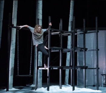 Jack Thorne, who won a Tony for co-authoring with J.K. Rowling and John Tiffany the highly successful play Harry Potter and the Cursed Child, has adapted Lindqvist's work for the stage and he sticks pretty close to the novel and film's main plot points. The fairly simple story focuses on the friendship that develops between shy teenager Oskar and Eli, the lonely, centuries old, vampire girl who has just moved into the apartment next door with her older protector Hakan. The play is a series of short scenes that depict how Hakan kills strangers in order to provide blood to Eli, how Oskar is continually bullied at school, and how his divorced parents shift between being absent, overly needy, and resentful. It's no wonder that outsiders Eli and Oskar find similarities in their lives. While Thorne's script doesn't fully flesh out Eli's relationship with Hakan or Oskar's with his parents, and also brings up a few small questions that are never truly answered, director Ron May derives refined performances from his cast and does well in not rushing the action, which allows the relationship between Eli and Oskar to grow organically in scenes that are well paced. May also lets the tension slowly build while keeping the creepy moments and eerie atmosphere always present. Brittney Watson and Nathaniel Smith are incredibly good as Eli and Oskar. They deliver distinguished portrayals of these two awkward social butterflies. Watson is both mysterious and intriguing yet full of sadness as Eli, while Smith clearly depicts the innocence of a boy who is tired of being bulled and is somewhat needy in his desire to find a connection with someone. They both desperately want to find a friend, and the desperation is palpable from the actors' clear portrayals. Together they create many touching moments of the friendship, love and trust that develop for this unorthodox coupletwo lost souls who, it seems, have finally found their soul mate. Smith was a last minute replacement in the part but you'd hardly notice from his clear, distinguished performance. Duane Daniels doesn't have many lines of dialogue but his facial expressions say everything we need to know about Hakan, who kills for the young girl he loves but has deep regret in doing. His desire to have some sense of closeness to Eli is what drives him to continually risk his life to kill for her. Daniels' ability to deliver expressions of sadness, desperation, regret, and desire at the same time is quite remarkable. In supporting parts, Brandon Caraco and Chase Zeiner are good as the school bullies, with Caraco the cocky leader and Zeiner the follower who has moments of resentment for his bad behavior. Kathleen Berger is effective as Oskar's vacant mother, who is prone to drink to wash away her problems, and Scott Hyder brings a strong sense of duty and responsibility as the gym coach at Oskar's school and an official who is trying to get to the bottom of the mysterious killings in town. Kaivan Mayelzadeh and Alex Kass round out the cast in several roles with Kass also providing the realistic fight choreography. Aaron Sheckler's set design does well in depicting the cold, bleak, and dark locales, with the use of only some large poles that resemble white birch trees, patches of snow on the ground, a jungle gym set-up, a row of lockers, and a raised platform for some of the interior scenes. The bleak and atmospheric lighting and sound designs by Dallas Robert Nichols and Pete Bish help to successfully portray the cold and creepy surroundings, and Maci Cae Hosler's costumes are character specific. While there are several moments of horror in the piece, and plenty of blood, the staging of those scenes, while highly theatrical, isn't always effective or entirely shocking. However, I'm not quite sure how some of these scenes could ever be done realistically on stage. While the stage adaptation of Let the Right One In may be slightly confusing for anyone who hasn't seen the film, due to the abstract settings and somewhat underwritten supporting characters, the need of friendship and the desire to survive is quite clear. Stray Cat Theatre's production features strong lead performances that are full of sadness and also a glimmer of hope, beautifully bringing to the stage this dark, sad tale of the ultimate outsiders who just want to be invited in vibrantly to life. Stray Cat Theatre's Let the Right One In, through May 4th, 2019, at the Tempe Center for the Arts, 700 W. Rio Salado Parkway, Tempe AZ. Tickets can be ordered by calling 480-227-1766 or visiting straycattheatre.org