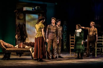 The plot follows the story of an 11-year-old girl named Winnie Foster whose father passed away a year before. She desperately seeks adventure outside of her small town of Treegap, New Hampshire, or just the chance to go to the local fair. One night she decides to run away from home and, deep in the forest, sees 17-year-old Jesse Tuck drinking from a spring. When Winnie also tries to drink from the spring Jessie stops her and later, after meeting his brother and parents, discovers that the entire Tuck family are now immortal after drinking from this magic spring many years ago. From the time she spends with the Tuck family, Winnie finds friendship and the adventure she desired but also has to decide if she wants to drink from the spring to live forever. However, evil lurks just outside the forest in the form of the Man in Yellow, who is on the hunt for the Tucks and their secret. Bookwriters Claudia Shear and Tim Federle follow fairly close to the plot of the original novel and while the score, with music by Chris Miller and lyrics by Nathan Tysen, is folksy, bright, enjoyable and charming, it also isn't entirely memorable. While the script may be slight, it doesn't always go where you think it will and has an ending that is quite poignant. Director Bobb Cooper has found a talented cast of youth actors to portray Winnie, the Tuck family, and a few small supporting characters. Copper also does quite well in staging the action to derive both emotion and humor. Nathalie Velasquez's choreography is infused with charm and elegance. Her extended dance sequence that comes toward the end of the musical is full of beauty and completely understandable with so much meaning derived from the dance steps even though a single word is never said. Music director Tristan Peterson-Steinert achieves exceptional sounds from the large cast and superb 16-piece orchestra. Creative aspects are top notch, with the combination of gorgeous scenic design by Dori Brown and Jeff Davis' lush lighting evoking beautiful stage images. Karol Cooper's costume designs are a gorgeous spectrum of earth tones and crisp and bright colors, and the sound design by Brian Honsberger ensures every word and music note is clear. Lainey Kenly is spunky and charming as Winnie. As Jesse, Riley Thornton is full of fire and an adventurous sense that also includes moments of recklessness. Andy Wissink is Jesse's responsible brother Miles, while Noah Delgado and Jessica Wastchak are both thoughtful, tender and caring as the Tuck parents. All five have beautiful singing voices that shine. Hayden Skaggs is mysterious and slightly scary as the Man in the Yellow Suit, while Reese Cantu and Parker Gates are quite funny as Hugo and his father, Constable Joe. 16-year-old Gates does an exceptional job of portraying a character who is many years older. Jessica Fink and Taylor Underwood round out the cast as Winnie's stern mother and lovable Nana. While Tuck Everlasting may not be a completely perfect musical, as the score could be better and the story could have a bit more intrigue and some added plot twists, Valley Youth Theatre's production is full of charm, heart and beauty, with a talented cast and rich creative aspects that effectively show the complexity of the world and the importance of making the right choices in the neverending circle of life. Tuck Everlasting, through April 21, 2019, at Valley Youth Theatre, 525 North First Street, Phoenix AZ. Ticket and performance information can be found at www.vyt.com or by calling 602-253-8188. Director: Bobb Cooper Cast: