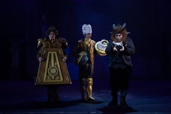 For the few out there who've never seen the film or the stage adaptation, or in case you need a reminder about the plot: The story begins once upon a time on a stormy night when a hideous beggar woman knocks on the door of a vain and arrogant prince and offers him a rose to provide her with shelter. He turns her away and when she reveals herself to be a beautiful enchantress, she casts a spell on him and everyone else in his castle for his lack of compassion. She tells him that the spell will be broken only if he is able to love another and earn her love in return. The prince is turned into a hideous beast, and all of his servants become inanimate objects. Years later, could the young woman named Belle who lives in a nearby village and who, through a series of circumstances, finds herself the prisoner of the beast in the castle be the woman who could break the spell? Director Chris Hamby has done a fine job to ensure his large youth cast create characters that are familiar enough to those who know the cartoon originals. He also has them add some nice unique touches to make the characters original. Just about every joke in the script lands, along with the romance, drama, tension, suspense, and important life lessons in the piece. Paul Pederson's lively, fresh and fun choreography provides many showstopping moments. Music director Ken Goodenberger achieves some beautiful vocals from the large cast. Dori Brown's expansive set design, which includes a wide and elaborate set for the Beast's castle, including two revolving sections that portray castle rooms and colorful scrims and other set pieces, and Jeff A. Davis' sumptuous lighting, which uses shadows and darkness in several scenes to beautifully echo the tension and drama in the show, expertly create the imaginary world of the film on stage. Bobby Samples' media design features vibrant and lush video projections that complement and add to the exceptional stage images. The creative and highly imaginative costumes by Kathi Miller and Brenda Moulder and the hair and make-up design by DeAndrea Vaughn beautifully bring the film characters to life on stage, but they don't simply rely on creating carbon copies of the movie designs and include plenty of original touches throughout. I especially love how Cogsworth's face is turned into the face of a clock, with the numbers on his forehead, cheeks and beard. The cast is very good. With a combination of determination, spunk, devotion and intelligence, Addison Bowman provides many layers and an abundance of nuance in her portrayal of Belle. As the Beast, Anand Khalsa is superb. The Beast is the character that changes the most in the show, and Khalsa beautifully depicts how he changes from a snarling, selfish man-child into a man who truly cares for those around him. His singing voice soars and his solo "If I Can't Love Her" is incredibly moving. Teddy Ladley is hilarious as the boastful and boorish Gaston, the conceited, muscle head who can't understand why Belle isn't attracted to him. Ladley has impeccable stage presence and comic timing along with a stellar singing voice that shines. In the supporting cast, Jared Barbee and Finnegan Clisham a fun twosome as the bickering buddies Lumière and Cogsworth, and Josh Pike is appropriately broad as Gaston's comical sidekick Lefou. McKenna Spanko is good as Mrs. Potts, ensuring her sensible and charming nature is clearly depicted, and Evan Culbertson is sweet as Belle's devoted father. In cameo bits, Terese Sanchez, Macie Thompson, and Mila Martinez all shine. Not only was Disney's Beauty and the Beast the first animated film to be nominated for a Best Picture Academy Award, but the stage adaptation has become one of the most loved and frequently produced musicals. TheaterWorks' Youth Works production has a strong cast and superb creative aspects that recreate on stage the magical and heartwarming moments from the hit film while adding plenty of original touches and creative aspects to deliver a solid production of this beloved musical. Disney's Beauty and the Beast, through May 19, 2019, at Theater Works, 8355 West Peoria Avenue, Peoria AZ. For tickets and information, visit theaterworks.org or call 623-815-7930