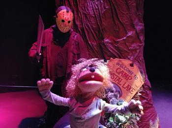 Director Shaun Michael McNamara's adaptation uses the major characters and plot device from the first film in the series but also adds in some characters from the sequels, as well as a few cameos of characters from other horror films such as Halloween and A Nightmare on Elm Street. The basic plot focuses on a group of teenagers who are preparing to open up Camp Crystal Lake for the season while the killer Jason Voorhees and his mother (well, actually her decapitated head) wreak havoc on the teens, killing them in an assortment of horrific ways. McNamara has incorporated more than a dozen classic musical theatre songs into the show with parody lyrics for each one that add some fun moments, like the opening song from Hamilton rewritten as an introduction for the killer Jason, and the hockey mask-wearing slasher doing a humorous soft shoe to "Puttin' on the Ritz. However, some of the lyrics are forced into the songs and are occasionally hard to make out due to the fast-paced nature of some of the songs and the uneven sound balance. In a plot in which the counselors are killed off one after another, there is also a repetition that starts to wear thin after a while, though McNamara does incorporate some humorous ways for Jason to kill them off that are reminiscent of what is seen in the films. Even though there are a few moments that don't quite land, the show is fairly fast paced with plenty of funny moments. The large cast almost all play multiple parts and are pretty good singers, with McNamara doing a great job with a speedy take-off of "I Am the Very Model of a Modern Major-General" from The Pirates of Penzance and Laura Anne Kenney delivering a powerful knockoff of "And I Am Telling You I'm Not Going" from Dreamgirls. The entire cast create individual characters and are quite proficient with their puppeteering skills. McNamara is also keen at adlibbing which, on opening night, added some very funny moments to the show. The set, which consists of three large, realistic looking trees reused from Mesa Encore Theatre's recent production of Into the Woods, and Brett Aiken's lighting design provide some excellent touches to the production, giving the whole show a very spooky and atmospheric feel. McNamara's sound design, which uses bits of the film score and a few other humorous pieces, adds to the scary, but also hilarious, nature. Friday the 13th, the Parody Musical may have a few jokes or moments that only elicit chuckles or don't completely land, but with the added musical sequences and the impressive creative elements, it makes for a fun and funny update of the classic horror franchise that both fans of the film or musical theatre will most likely find to be very amusing. Friday the 13th, the Parody Musical runs through October 26, 2019, at All Puppet Players, Playhouse on the Park, 1850 N. Central Avenue, Phoenix AZ. For tickets and information, visit www.allpuppetplayers.com or call 602-254-2151 Director/ Adaptation / Sound Design: Shaun Michael McNamara Cast: |