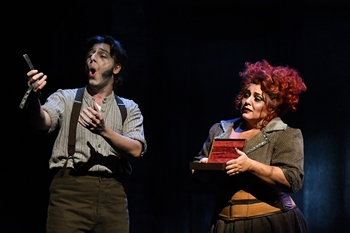 Sweeney Todd is set in 19th century London and tells the tale of a barber named Benjamin Barker who has been falsely imprisoned for fifteen years. When he finds his way back to London, he changes his name to Sweeney Todd and sets out to seek revenge against Judge Turpin, the man who wanted to steal away the barber's wife Lucy so he had him exiled away to Australia. Upon his return, Todd discovers that Lucy took poison and was driven to suicide and that Turpin now intends to marry Todd's grown-up daughter Johanna. While Todd waits for his turn to get Turpin in his barber chair so he can slit his throat, the conniving Mrs. Lovett, who runs an unsuccessful meat pie shop under the room where Todd used to live and work, assists him in his efforts and together they also find a profitable way to dispose of the numerous bodies Todd kills on his way to getting justice. Sweeney Todd may be a dark musical about a murderous barber who seeks revenge and kills everyone who gets in his way, but it also has one of musical theatre's best scores. For its original 1979 Broadway production, it was nominated for nine Tony Awards, winning eight, including the Tony Award for Best Musical. Sweeney Todd beautifully interweaves moments of black comedy and elements of Grand Guignol theater with the incredible wit in both Sondheim's lyrics and Wheeler's dialogue and the intense and identifiable story of redemption and the act of seeking revenge for injustice. Sondheim's score is almost non-stop throughout, featuring soaring ballads, introspective numbers, comical tunes with witty wordplay in the lyrics, and lush group numbers. Kiel Klaphake's direction provides the perfect moody tone for the piece with a proper balance between drama and black comedy, and he ensures none of the serious, scary moments ever cross over into being too humorous. His staging works extremely well and makes wonderful use of Aaron Sheckler's two-story set. His perfect use of the ensemble in the crowd scenes and the sequences that take place on the London streets give a sense of the large, varied population of the city. James May's music direction is superb, with a cast and orchestra who deliver gorgeous notes and sounds for every song in what I believe is Sondheim's best score. Kathleen Trott's costumes and Amanda Gran's wigs are perfect, while Steve O'Shea's lighting provides the appropriate level of moody shadows and dark touches. Connor Adams's sound design ensures every lyric and line of dialogue is crystal clear, with a perfect sound balance between cast and orchestra. I don't know who is responsible for the blood effects in the show but they are even more realistic and shocking than the ones in last year's production. I wrote in my review last year that Tony Edgerton was sensational as Todd, and his performance has only deepened in providing the perfect sense of brooding and focus for the obsessed Todd. He also instills just the right combination of menace and moodiness, making the audience see just how dangerous and unhinged a man Todd is, and we see in his laser focus that Todd is always thinking of his next move. Edgerton's singing voice is sensational, with pure and clear tones on every one of his songs. It's one of the best performances of Todd I've witnessed in the dozens of productions of this musical I've seen. Likewise, Cassandra Klaphake has also grown in her excellent portrayal from last year as the no-nonsense Mrs. Lovett. Klaphake's fine-tuned performance lets us see that Lovett is just as calculating as Todd, but for different reasons. We clearly understand that Lovett is determined to get what she wants and that she realizes that, with Todd's partnership, she can get happiness and a man at the same time if she plays her cards right. Klaphake also brings an appropriate sense of warmth to the role, which helps in making her ability to persuade others to do her bidding seem realistic. Her vibrant singing voice also ensures that her songs evoke the same forceful and charming characteristics as the character. Also returning from last year's production are Ryan Michael Crimmins as Anthony, a young sailor who befriends Todd and ends up falling for his daughter Johanna, and and Steve McCoy as the evil and lecherous Judge Turpin. Both men deliver rich and refined performances of these two very different men. Crimmins' singing voice is bright and clear, delivering a strong version of his solo "Johanna," and McCoy's take on his role is appropriately eerie. Meggie Siegrist is still excellent as the half-crazed Beggar Woman, with a soaring singing voice, while Tristan Klaphake's sweet disposition and curious nature work very well as Tobias, the assistant to the barber named Pirelli, with a youthful sense of curiosity. Seeing real life mother and son Cassandra and Tristan Klaphake deliver the show's best-known song, "Not While I'm Around," with an abundance of tenderness is a highlight. Actors new to the cast this year include Nicki Elledge as Johanna, Matt Flocco as Pirelli, and Matthew Mello as Turpin's lecherous right hand, the Beadle. All three provide portrayals that are clear and strong, with Elledge's sweet nature and lilting voice, Flocco's astute and crafty line delivery, and Mello's clear sense of danger adding nice layers to their characters. With creative elements featuring bold and stark elements with appropriate pops of color, and a cast who have no problem maneuvering their way around the challenging Sondheim score, Arizona Broadway Theatre's production of Sweeney Todd is still as haunting and beautiful as last year's Herberger production. The dinner menu includes some themed dishes, including "Mrs. Lovett's Meat Pie," which I highly recommend. I'm glad I went back for a second helping of this masterpiece of a musical. Sweeney Todd runs through November 9, 2019, at Arizona Broadway Theatre, 7701 West Paradise Lane, Peoria AZ. For tickets and information, visit www.azbroadway.org or call 623-776-8400. Book by Hugh Wheele