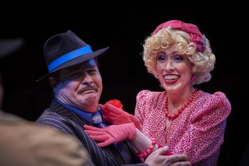 Guys and Dolls centers on a group of colorful New York City natives which includes a pair of gamblers and the ladies in their lives. Nathan Detroit needs $1,000 to secure the location for his next floating crap game, which he doesn't have. So he strikes a bet with fellow high-roller Sky Masterson, who is known to bet on anything, that Sky won't be able to get a girl that Nathan chooses to go to dinner with him. Sky takes the challenge, only to find that the girl Nathan picks is the pious leader of the local Save-a-Soul missionary, Sarah Brown, who is trying to save the souls of the gamblers in the area. Nathan has romantic problems of his own, due to his impatient fiancée of fourteen years, Miss Adelaide. Pressure mounts when the notorious bachelor Sky finds himself actually falling for Sarah and when Adelaide begins to doubt Nathan's intentions. Also, Sarah's future is in jeopardy when the mission is on the verge of being shut down. Composer Frank Loesser and bookwriters Jo Swerling and Abe Burrows based the musical on the short stories of Damon Runyon. This gifted cast, under Cambrian James' clear direction, ensure Runyon's colorful and humorous characters are more than just cartoon creations. The songs in Loesser's exceptional score, which includes such well-known showstoppers as "Luck Be a Lady," "Sit Down, You're Rockin' the Boat," and the title song, sound sensational under Cathy Hauan's music direction, which derives lush harmonies from the cast. As the two main couples, Austin Delp and Hannah Marie Harmon ooze romance as Sky and Sarah, and Matthew R. Harris and Heidi-Liz Johnson are comically delicious as Nathan and Adelaide. Delp and Harmon have voices that soar on their several romantic duets, while Harris and Johnson wring every ounce of humor from their comical lines and situations. Delp and Harmon's vocal abilities are superb and the growing romance between Sky and Sarah is realistically depicted by the duo. Harris doesn't miss a beat in finding the humor in his frantic character, who constantly finds himself in frenzied situations. Johnson's rendition of "Adelaide's Lament" is a knock-out and her duet with Harris, "Sue Me," is comic gold. The ensemble features gifted comical actors who are also exceptional vocalists, including Jere Van Patten as Nicely-Nicely Johnson, who brings down the house with an exuberant "Sit Down, You're Rockin' the Boat," and Jared Kitch, who is sensational as Benny Southstreet with a deep and beautiful singing voice that excels. Also, Tom Endicott is warm and sincere as Sarah's grandfather; Raymond Barcelo is hilarious as Harry the Horse (his whining neighs are a hilarious added touch); and Kathleen Richards is firm and fun as the Salvation Army general who shows up unexpectedly. Allan DeWitt and Mac Hawbaker each get a moment or two to shine as the gangsters who get involved with Nathan's craps game, and J. Roger Wood is appropriately frustrated as the police lieutenant who is on the gambler's trail. James' choreography is lively and upbeat, and his wigs and make-up, along with Gabrielle Sciabbarrasi's fun costumes, are period perfect. Brian Daily's set designs, along with Jessica Ottley's gorgeous projections, ground the show in 1950s New York City, and Tim Dietlein's lighting delivers a nice combination of sunny, warm colors for the daytime scenes and cool tones for the scenes set late at night. With a sensational cast, expert direction and choreography, and superb creative elements, Hale Centre Theatre offers a winning production of this classic musical comedy. Guys and Dolls runs through March 28, 2020, at Hale Centre Theatre, 50 W. Page Avenue, Gilbert AZ. For tickets and information, please visit www.haletheatrearizona.com or call 480-497-1181 Directed and Choreographed by Cambrian James Cast: |