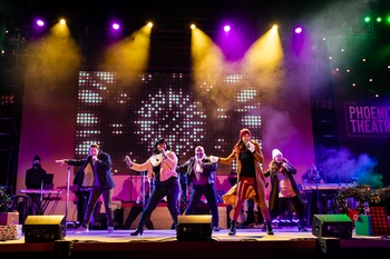 The performers for this holiday concert all have connections to Phoenix or Phoenix Theatre Company, many having appeared in numerous past musical productions at the theatre including husband and wife Mark and Lynzee 4Man, two of the owners of Brock Pro Entertainment. Mark serves as the musical director and Lynzee performs and also provides the fun and tightly in synch choreography. Walter Belcher, Alyssa Chiarello, Lynzee 4man, Alexandra Ncube, and Sam Primack each get many chances to shine, including delivering several impressive vocal solos. The band features Mark 4man conducting and also on keys, with Toby Yatso (keys), Daniel "Cheesy" Johnson (guitar), Dan Stotz (bass), and Alex Lee (drums). Mark 4man also provides many of the arrangements for more than two dozen songs, and they are all as polished and impressive as the production. The band kicks the evening off with a fun, new version of "Linus and Lucy" before the ensemble of performers hits the stage to proclaim "We Need a Little Christmas," which was originally written for the musical Mame but almost instantly became a holiday classic. A medley of two songs from another musical, White Christmas, follows, featuring "Happy Holidays" and "Let Yourself Go," which Walter Belcher and Sam Primack deliver with energetic vocals and some fancy footwork. Belcher has appeared in numerous Phoenix Theatre shows, including the recent productions of The Scottsboro Boys and Chicago, while Primack was recently in the company's production of Newsies before playing the lead role of Evan Hansen in Dear Evan Hansen, first as the understudy on Broadway and then as the alternate in the national tour, until the tour was shut down last March due to COVID. Belcher's solo of the introspective "Mary, Did You Know?" hits some impressive high notes. Hanukkah and Kwanzaa get shout outs in solo numbers before 4man's excellent arrangement of "Carol of the Bells," which begins as an instrumental piece before it explodes into a symphony of well-arranged vocal harmonies. Alyssa Chiarello delivers a knock-out version of "You're a Mean One, Mr. Grinch" that is sexy, flirty and feisty; it made me think of what Eartha Kitt would sound like singing that tune. Chiarello, Lynzee 4man and Alexandra Ncube form a fierce trio on the Weather Girls' holiday hit, "Dear Santa, Bring Me a Man." Chiarello has been a staple at Phoenix Theatre over the last several seasons in close to a dozen shows, including playing the lead in Evita, Anita in West Side Story, and Yitzhak in Hedwig and the Angry Inch. 4man has been featured in numerous Phoenix Theatre productions, including Chicago, In the Heights, and Godspell, and Ncube is a Phoenix resident who played Nabulungi in the first national tour and the West End production of The Book of Mormon. All three women are gifted performers and vocalists. Other highlights in the show include Primack's superb version of Adam Sandler's hilarious "The Chanukah Song" and Ncube's delivery of "All I Want for Christmas Is You," which is gorgeously sung. There is also a fun audience singalong of a few well-known holiday favorites, plus a medley of three songs from Frozen and Frozen II that receives an excellent arrangement and marvelous vocals. This includes Chiarello and Ncube delivering a lovely duet of "Do You Want to Build a Snowman" that is followed by 4man's soaring take on the Oscar-winning "Let It Go" before Primack shows off his impressive high notes on "Into the Unknown." Robert Kolby Harper's direction and musical staging are impressive and polished. Dave Temby's sound design ensures every note of the singers and the band are crystal clear, and Kristen Peterson's lighting adds warmth and depth to the stage imagery. Daniel "Cheesy" Johnson not only plays the guitar in the band, and is also a co-owner of Brock Pro, but he also created all of the impressive video designs for the show, which are projected on a large video screen behind the stage and are a combination of holiday images, fun cartoon segments, and some stunningly gorgeous moving landscapes. The band is as impressive as the overall production and, while not every member of the band gets a solo, Yatso has a brief keyboard solo on "Have Yourself a Merry Little Christmas," and Johnson's guitar solo during "O Holy Night" rocks. With temperatures in the evening in Phoenix dropping into the 50s, the beautiful outdoor setting of the large courtyard of the Central United Methodist Church, which is located directly on the north side of Phoenix Theatre's parking lot, is a perfect venue to get in the holiday spirit, while also ensuring safety measurements are easy to follow. The low temps may make things a tad chilly, but the terrific vocals and striking musical notes heard in Unwrapped: An Original Christmas Revue will warm the heart of even the most Grinchiest of individuals. Unwrapped: An Original Christmas Revue runs through December 23, 2020, at The Phoenix Theatre Company's outdoor stage at Central United Methodist Church, located on the north side of the Phoenix Theatre's parking lot, at 100 E. McDowell Road in Phoenix AZ. Tickets can be purchased at phoenixtheatre.com or by calling 602-254-2151. Director/Musical Staging: Robert Kolby Harper Cast: The Musicians |