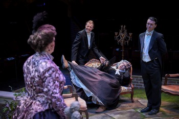 The play is set in Victorian-era Oxford and centers on a trio of undergraduates at the college. Jack Chesney and Charles Wykeham are in love with Kitty Verdun and Amy Spettigue, respectively, and have invited them over for lunch in order to propose to them. However, the two know that the girls won't stay without a chaperone, so Charley enlists the help of his aunt, whom he has never met, as she is on her way over from Brazil for a visit. When she telegrams to say she has to delay her trip, Jack and Charley enlist their friend Lord Fancourt Babberley, who is involved with an amateur theatric group and just happens to have an old woman's costume in his case, to dress up and impersonate Charley's aunt. Hijinks immediately ensue due to the mistaken identity. Adding to the hilarity is the fact that Charley's aunt, Donna Lucia d'Alvadorez, is a rich widow whom both Jack's father and Amy's uncle pine after. Thomas' script has all of the components of classic farce (chases, mistaken identity, split-second timing, incredibly improbable coincidences, and overheard conversations that reveal plot points and character motivation), but it's also infused with an abundance of charm and lovable characters you can root to see succeed. While the play isn't entirely laugh out loud funny, and it takes about 15 minutes for all of the elements to jell and for the plot to kick into high gear, it does have many humorous set ups and comic moments that work really well with a cast that has good timing and sharp line delivery to ensure that both the verbal and physical comedy moments land. Hale has double-cast this show and on the night I attended the Gold cast was performing. They form a seamless comic ensemble and embrace the hilarious hijinks in the script. Under Jere Van Patten's practically perfect direction, the cast is appropriately silly without ever veering too close to being over-the-top with their portrayals or adding any unnecessary indulgences which could result in a slowing down of the breakneck pace of the play. Also, Van Patten's staging makes good use of the various backstage and lobby entrances, and he lets the comic moments build naturally. Jeff Deglow delivers a winning performance as Lord Fancourt Babberley (Babbs). He has perfect double-takes and clearly lets us see the conflicted feelings Babbs has in being forced to masquerade as the doting aunt. From Deglow's solid portrayal we understand that, while Babbs has never dressed up as a woman before, he both relishes the chance to play this part and laments the hassle of having to continually ward off the two suitors who won't give him a moment's rest. As the duo of Oxford students whose scheme sets the plot in motion, Brandon Caraco and Ben Emerick, as Jack Chesney and Charles Wykeham, respectively, are very good. Caraco and Emerick's strong performances let us see that Jack is assured and strong while Charley is slightly shy, nervous, and somewhat unsure. The two also play off each other very well, which adds to the fun. As the two men who woo Charley's aunt, Ben Mason is smart and charming as Jack's father and Zack Diepstraten is an absolute riot as the wound-up, hot-headed Stephen Spettigue. Emily Noxon delivers a warm and playful performance as Charley's real aunt, with a continual wink in her eye once she realizes what Jack, Charley, and Babbs have cooked up. While the three women who play the love interests of Jack, Charley, and Babbs don't get a lot to do, Kelly Hajek, Amanda Valenzuela, and Ariana Mai Lucius derive performances that are subtle, sensible and strong. Brady Anderson rounds out the cast with a dry but humorous portrayal of Jack's put-upon servant Brassett. Hale's creative aspects are, as usual, top notch. Brian Daily delivers a sumptuous set design, with beautiful period set pieces and a floor gorgeously painted to resemble an outdoor courtyard. Tim Dietlein's lighting is bright and warm. Tia Hawke's costumes are drop-dead gorgeous, with lush gowns with beaded accoutrements and other refined touches for the women, and Cambrian James' wigs and make-up are lush and lovely. With a cast who beautifully embrace the comedy in the script, perfect direction, and excellent creative aspects, Hale's production of Charley's Aunt is a fun, lighthearted farce with an abundance of charm and wit. Hale has implemented many safety protocols for this production, in line with both city and state requirements, including limiting the audience capacity, providing socially distanced seating, and requiring masks from all audience members. A list of all safety requirements can be found on their website. Charley's Aunt runs through March 27, 2021, at Hale Centre Theatre, 50 W. Page Avenue, Gilbert AZ. Tickets can be ordered at www.haletheatrearizona.com or by calling (480) 497-1181 Producers & Casting Directors: David & Corrin Dietlein Cast: |