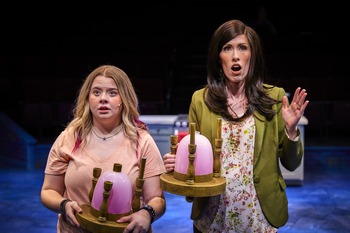 The plot focuses on the mother-daughter duo of Katherine and Ellie Blake, who constantly argue and get on each other's nerves. Katherine is a multitasking control freak who is doing everything for her upcoming wedding, which is just a day away, including making the cake. Ellie is a teenager who is more concerned with her friends and boys than her studies. She is especially focused on one boy in particular: Adam, who is running "The Hunt," the annual scavenger hunt that Ellie is desperate to participate in even though it means that she'll miss her mother's wedding rehearsal dinner. The two get into a heated disagreement, as they both profess that they don't understand each other, and when a sentimental object they are holding mysteriously breaks, they discover that they have magically swapped bodies. Will Katherine and Ellie be able to find a way to switch back before Katherine's wedding the next day, while navigating the demands of school, work, a parent teacher conference, and the impending wedding? The musical is based on Mary Rodgers' 1972 novel as well as the 1976 movie, the 1995 made-for-TV remake, and the 2003 film remake. The screen versions made changes and added new elements, characters, and plot twists to Rodgers' original story and for the musical, Bridget Carpenter also added some fun updates. She kept the wedding plot from the 2003 film but added in the scavenger hunt subplot and the idea that is the impetus of the body swap, as well as updating the story for the cell-phone era. Those updates work very well to keep the plot fresh while also providing some fun modern changes for those who are fans of the films or the book. Tom Kitt (music) and Brian Yorkey (lyrics) have crafted a fun, driving score that combines modern rock and pop styles with traditional musical theatre ballads, though a few of the songs are just average. The score, while charming and upbeat, never comes close to the brilliance they showed with their songs for Next to Normal, which won them the Tony for Best Score and the Pulitzer Prize. Director Cambrian James does an excellent job ensuring the emotional story at the core of the show isn't lost under the humor and fantasy elements. His leads are perfect, as is the rest of the cast, and he also keeps the show moving along at a brisk pace, with scene changes that whisk by. His choreography is modern, fresh and fun. Dr. Cathy Hauan's music direction achieves clear, bright sounds from the entire cast. Heidi-Liz Johnson and Hope Niven are exceptional as Katherine and Ellie, respectively. While the body swap happens toward the beginning of the show, they both get just enough time to create realistic characters so when they switch, you instantly see how they are now completely different individuals. They both use fun and numerous changes in their body language and facial expressions to make the change not only believable but also hilarious. Ellie wears sneakers, so seeing Johnson trying to walk in her mother's wedge shoes once the body switch happens is just one thing that adds to the hijinks. This is Johnson's 25th Hale show and she delivers another flawless performance. This is Niven's first Hale show and she is just as good as Johnson. Both actresses have superb singing voices that soar, assured line delivery that makes every joke land, and they make excellent acting decisions that ensure the emotion in the relationships their characters have with each other, their family members, and their friends is real. It's a joy to witness Johnson instantly change before our eyes from the uptight mom to the teenager who talks back and is full of sass while Niven morphs from the confrontational teen to the caring mother. As the men in their lives, Mychal Leverage is very good as Mike, Katherine's fiancé, Riley Thornton is charming and warm, with a rich singing voice, as Adam, and Zacary Nelson is absolutely adorable as Ellie's younger brother Fletcher. Evening Calabrese is fun as Katherine's overworked and always anxious assistant Torrey; Annie Heartney and Josephine Malsonado are bright and delightful as Ellie's best friends; and Jonice Bernard is appropriately nasty as Ellie's rival Savannah. The small supporting cast do a wonderful job, including Bennett Wood, Alice Johnson, Sarah Cleeland, Raymond Barcelo, and Adam Guinn, who easily navigate their way through portraying multiple roles, and Payten McLeod, Hugh Hocknull, and Olivia Woodward Shaw, who play Ellie's classmates. Hale's creative elements are always excellent. Brian Daily's set design effectively uses several large moving pieces to depict the interior of Katherine's high-end kitchen, the rooms and hallways at Ellie's high school, and several other locations in the show. Tia Hawkes's character perfect costumes are bright and modern and Cambrian James' wigs and makeup designs help the ensemble quickly play several roles with ease. The lighting design by Tim Dietlein uses a range of colors and hues that work well with Daily's set and Jessica Ottley's simple but effective projections to successfully portray the many locations and times of day in the show. McKenna Carpenter's props are abundant and realistic, especially the sentimental object that is at the center of the body swap. Josh Lindblom's sound design allows for every word and lyric to be heard with a crisp clarity. Freaky Friday is fast paced and funny, but it is also an emotional story that shows how becoming another person for a short period of time, or at least living in their body, could open your eyes and make you appreciate them better once you experience the obstacles they face in their lives. With an exceptional cast, spotless direction, fun choreography, and rich creative elements, Hale Center Theatre's production is a winner. Freaky Friday runs through August 14, 2021, at Hale Centre Theatre, 50 W. Page Avenue, Gilbert AZ. For tickets and information, visit www.haletheatrearizona.com or call 480-497-1181 Producers and Casting Directors: David a