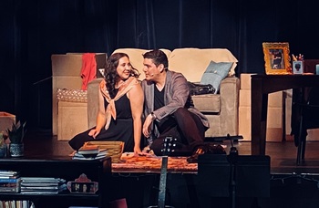 The Last Five Years tells the story of a failed marriage and was based on an actual relationship in composer Jason Robert Brown's past. It follows two aspirational New Yorkers in their twenties, with some terrific songs by Brown. Jamie is a writer who finds success early, while Cathy is an actress who struggles throughout her career. Over the five-year period of the show, we see them meet, fall in love, fight, have some touching moments together, get married, squabble, fall out of love, and ultimately separate. The fact that they end up separating isn't a spoiler, as the theatrical gimmick of this musical is that, at the beginning of the show, Cathy starts out hurting and heartbroken at the end of the relationship and moves backward in time over the 80-minute show to their first date, while Jamie starts the show at the very beginning of their relationship, eager and feeling he has finally met the girl of his dreams, and moves forward in time through all the pressures and struggles of their lives. Brown's score is glorious and features varied compositions and ingenious lyrics. However, while the idea to show the five years in Jamie and Cathy's relationship in an overlapping timeframe is original and theatrical, it doesn't always quite work. Due to the shifting time element, the score is a series of solo songs, with only one duet at the middle of the show, "The Next Ten Minutes," which takes place at their wedding. The drawback of having a series of solo songs, even if they are exceptionally well crafted "story" songs, is that there is minimal interaction between the only two characters in the show.