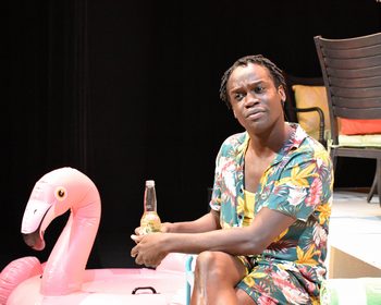 Bright Colors ... is set in Palm Springs in 2016 and begins with Gerry arriving for the same-sex wedding of his friend, which is to be held the next day. He's staying at an Airbnb house with his former roommate and friend (who was also briefly his lover) Dwayne, Dwayne's much younger boyfriend Mack, and Dwayne's ex-boyfriend Neal. While seeing Gerry, whom he despises, meeting the clueless 23-year-old Mack, and the long, harrowing drive from Los Angeles have him frazzled, what's really set Gerry off is the wedding invitation which requests guests to not wear bright colors or bold patterns to the wedding. As the night turns into morning, the insults fly, the alcohol flows, and drugs are shared while Gerry goes on tirades about the family members of one of the grooms who would dare tell him what he can wear, the shock that Mack doesn't know who Olympia Dukakis is, and how, in reference to the wedding invitation's request to wear drab colors, that khaki isn't a color in the gay rainbow. When Mack questions why it seems that Gerry hates or makes fun of everything, Gerry says that we can celebrate things while making fun of them at that same time. "That's called gay." Once the drugs run out and Gerry spirals further down into the pit of darkness and self-doubt, he also has a brief reflective moment on his habitual loner and outsider status. He also comes to the realization of why he isn't that excited to see his gay friends get married as he questions what this race to "normalcy" has done to the gay community. "I'm happy for them," he says, "I'm just not sure I'm happy for us." Droege's play has an abundance of laughs and witty, catty dialogue. He also makes an interesting choice in having there technically be four characters in the play, yet we only see and hear one of them speak. So, Gerry will be going on a tirade about Coachella or a band with a period in their name and then there will be a brief moment of silence while he's listening and reacting to one of the other character's responses. It is an interesting and odd theatrical device. Also, Gerry is the type of person you either love or hate, or can only take in very small doses, and that creates another issue I have with the play. When Gerry first enters, his voice level is at an 11 out of 10 and stays at that screaming level for practically the entire show. As funny as the character is, and as great as Thompson's performance is, it starts to wear really thin after experiencing a practically non-stop wall of sound. Also, when the play turns serious toward the end, it's almost as if it's an afterthought in how brief it is. That's a shame, as what Droege has written for that moment is really good. I just wish he'd fleshed it out further to provide even more depth for Gerry. Still, if you like loud, larger than life personalities who speak with a non-stop venomous tongue, you may not be bothered by the issues I have with the piece. Fortunately, Michael Thompson is nothing short of amazing as Gerry. I've seen Thompson in several other shows in town and it's nice to see him get a solo piece where he can truly shine. Thompson is engaging, authentic, and larger than life as this character who is a cross between a tornado and a hurricane. His stage presence is solid, his facial gestures and body language add to the humor, and he embodies Gerry with an appropriate fierceness and "take no prisoners" attitude that works. He also has no problems with the rapid-fire line delivery the script requires and making every single joke land and land perfectly. Director Louis Farber does a good job staging the action on Douglas Clarke's amazing set that looks so realistic you'll want to move in. I only wish Farber had varied the volume a bit in Thompson's performance so there could be more variety to it and so that the ending, which is very quiet, wouldn't stick out so much. Farber's direction and Thompson's performance deliver a fully fleshed out, three-dimensional character and the sequence of black outs in the show are superbly directed and acted. Dallas Robert Nichols' lighting design beautifully evokes the changing times of day in Palm Springs, from the bright and sunny afternoon to the cool and reflective evening. Bright Colors and Bold Patterns may not be a perfect play, as I wish there was more to the ending and more variety in Gerry's dialogue, but with Michael Thompson's assured performance it does deliver nonstop cutting asides and is chock full of references to gay icons and pop culture, while also being loud, fast and funny. Stay Cat Theatre's Bright Colors and Bold Patterns runs through October 2, 2021, at the Tempe Center for the Arts, 700 W. Rio Salado Parkway, Phoenix AZ. For tickets and information, please call 480-227-1766 or visit straycattheatre.org