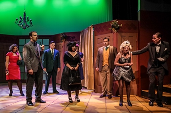 The plot, adapted for the stage and expanded slightly by Sandy Rustin, Hunter Foster and Eric Price, follows the film screenplay by Jonathan Lynn fairly closely. Six strangers have been invited to a remote mansion outside of Washington D.C. for a dinner party. They are all given pseudonyms and over the course of the evening it's revealed they've all been being blackmailed by the same person, their host Mr. Boddy. When Boddy is found dead, they all become possible suspects, so the guests, along with the butler Wadsworth, race to reveal who the killer is. The stage script honors the hijinks and insanity of the film while also adding in some new gags. While there are plenty of twists and turns in the play, it's fairly silly and even corny in spots and, unfortunately, there isn't much in the added material that elevates it above the screwball nature of the film into something more stylish and sophisticated. However, it does find a way to honor the film's multiple endings (three different endings were shot, with a random ending being used in different cities when the film was released and all were included as a bonus feature on the film's DVD release), which makes the finale, as everything comes together, great fun and even a better payoff than the movie's ending. Director Mark-Alan C. Clemente does a fairly good job in ratcheting up the ridiculous nature of the characters and plot. Unfortunately, the set design isn't that elaborate or realistic and with a script that calls for scenes set in close to a dozen different rooms in the house and multiple, fast scene changes between those rooms there are many lulls in the action as large pieces of furniture have to be swapped before the next scene can begin. The furniture that is used is great, but for a fast-paced comedy, those moments bring the pacing to a halt several times. Clemente does make good use of two curtains on the set to quickly change a few scenes, but since the stage in Desert Stages' Cullity Hall is large I would have thought one side could have been used for one location while the other was being pre-set for the next, with the use of lighting to focus our attention appropriately. Clemente does include a live accompanist and live foley sound effects that add to the fun, though there could be more of them to truly make their addition shine, and Tamara Treat's costumes, which play on the color schemes of the six suspects' assumed names, are gorgeous. Joshua Hengst is excellent as Wadsworth, the mansion's butler. His accent is flawless and his comic timing and delivery get big laughs. As the six suspects, Cat Hartmann (Miss Scarlet), Christina Clodt (Mrs. White), Jennifer Lee White (Mrs. Peacock), Carson Ware (Mr. Green), Bradley McGinnis (Professor Plum), and Nathan Traxler (Colonel Mustard) all play up the eccentric nature of their characters, but not all have the comic timing that is required to ensure the jokes land and that the peculiarities of their roles resonate. Also, based on the backstories we are told, some of the cast appear much younger than the characters they are playing, and they should have been made up to look closer to the characters' ages. Alixandra Giordano is playful and fun as the French maid Yvette, and Mallory Alvarez, Carlos Sanchez Beltran, Dierk Seeburg do well in several small parts, including providing a few fun moments where they play dead bodies that get moved around or remain on the stage. The play, like the film, is a ridiculous romp with eccentric characters and silly situations. While Desert Stages' production has some shortcomings with its cast and pacing, and the play itself isn't perfect, if you're a fan of the film or of humorous murder mysteries, you'll most likely find something to enjoy in the stage version of Clue. Clue runs through October 10, 2021, at Scottsdale Desert Stages Theatre at Fashion Square, 7014 East Camelback Road, Suite 0586, Scottsdale AZ. Tickets and information are available at desertstages.org or by phone at 480-483-1664. Director: Mark-Alan C. Clemente Cast: |