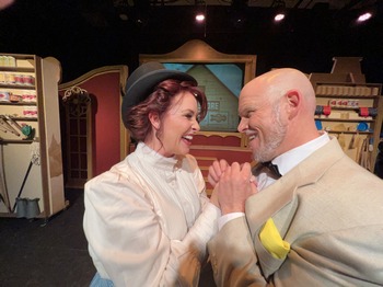 Set in New York in the late 1800s, the plot follows widow Dolly Levi, a determined and brassy woman of many talents who provides her services, including matchmaking, for a fee. When the wealthy Yonkers, New York, merchant Horace Vandergelder hires Dolly to find him a wife, the meddling, nosey, and fast-talking Dolly sets her sights on getting Horace for herself. Along the way, everyone around Vandergelder, including his overworked clerks and his young niece, get caught up in Dolly's plan, as she encourages them to find joy and happiness in their lives. Based on Thornton Wilder's play The Matchmaker, Hello, Dolly! features a score by Jerry Herman that includes several lush romantic ballads and over a half dozen toe-tapping tunes, including "Before the Parade Passes By" and the title song. Michael Stewart's book is fast paced and fun, and even though the show is a bit dated in how the women are all trying to find husbands, they are all strong female characters who often dominate their cranky and naïve male counterparts and are all in complete control of the consequences of their actions. As Dolly Levi, Britt Powell exudes warmth and charm. It's easy to see from the large and rich personality that Powell brings to Dolly how so many people fall under her charms. Powell navigates quite well between the humorous quips and opinions Dolly often states and the introspective talks she has with her late husband to make Dolly a realistic woman. Powell is forceful, but she also brings plenty of heart to the role. Her singing voice is bright and brassy but also a little thin, but she still pulls off all of Dolly's well-known songs quite well. Adam Guinn is wonderful as the cantankerous Horace Vandergelder. Guinn doesn't play Horace as just mean, irritable and insufferable, as others in this role have played him; he also brings warmth and realism to make Horace truly three-dimensional. Guinn's singing voice is rich and appealing. Tyler Galley and Charlie Hall are knockouts as Cornelius Hackl and Barnaby Tucker, Vandergelder's underpaid and overworked clerks. Galley's perfect comic timing and exaggerated facial expressions get lots of laughs, and Hall's exuberance, joy, and athletic dancing result in a winning and crowd-pleasing performance. Lauren Tye and Ashley Letizia are both spirited and charming as Dolly's friend Irene Molloy and the giddy, fun-loving Minnie Fay, respectively. All four have vocals that are bright and soar. In smaller parts, Devorah Coon and Kyle Webb are appealing as Ermengarde, Horace's niece, and her enamored boyfriend Ambrose, and Lynn Golden is a hoot as Ernestina, a loud woman Dolly sets Horace up on a date with. Michael E. Bryce's perceptive direction ensures the comic scenes get big laughs while not shortchanging the heartwarming, emotional and romantic moments. The large cast do quite well with the abundance of choreography by Ashley Harkey and Djuro Baich, which also provides a few moments to highlight Ermengarde and Ambrose, helping to make their characters more present in this production than in others I've seen. Michael Snyder's music direction delivers good vocals from the entire cast. J. Michael Sanders' set design incorporates several rolling set pieces that quickly move the plot from one location to the next, with Bryce's media design providing archival photos and paintings of the various locales. The costumes by Pam Allen and Sharyn Sheffer are stunningly gorgeous and period perfect; Dolly's red dress when she goes to the Harmonia Gardens is a knockout. Hello, Dolly! is a fun, upbeat classic musical. While the story may be old-fashioned, the message that it's never too late to find romance and adventure in your life is one that never gets old. Hello, Dolly! runs through November 20, 2021, at Zao Theatre, 550 South Ironwood Drive, Apache Junction AZ. You can get information and tickets at www.zaotheatre.com or by calling 602-320-3275 Director/Media Design: Michael E. Bryce Cast |