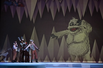 The stage production is adapted by Robert Penola from Romeo Muller's 1964 teleplay, which was based on the original 1939 story by Robert L. May and the famous song by Johnny Marks. It closely follows the TV special and features all of the show's memorable songs. Narrated by Sam the Snowman and set in the North Pole, the story focuses on Rudolph, the newborn son of one of Santa's reindeer team, Donner, and his wife. Rudolph has a small difference that sets him aparthis bright red nose glows, which causes him to be dubbed a misfit, just like one of Santa's elves, Hermey, who doesn't like building toys and who aspires to be a dentist. When Rudolph decides to run away, feeling he's a disappointment to his family and tired of being mocked by the other reindeer, he runs into Hermey, who has also set off on his own. Their partnership sets in motion a plot where their unique qualities are used to help save Christmas. Director Dwayne Hartford brings the perfect balance of comedy and drama to this production, and the cast all do a good job in portraying the beloved characters, with all but two of the actors playing multiple roles. While there are a few brief scary moments when the Abominable Snowman appears, Hartford's direction and the cast's performances are mostly lighthearted and humorous, though the serious message of the story is never short changed. Tommy Strawser is bright, charming, energetic and innocent as Rudolph, and Jon Gentry is warm and engaging as Sam. The rest of the cast play so many parts that I have to imagine the many quick costume changes they all make offstage are as tightly choreographed as the show. Tommy Francesco is funny as Hermey, Katie McFadzen is a hoot as the fun-loving gold and silver prospector Yukon Cornelius, and Marshall Vosler is delightful as Santa. As Clarice, the reindeer who thinks Rudolph's nose is handsome, Anna Sera is radiant and winning. The rest of the cast play many supporting roles. Michael Thompson is bratty and joyful as the rambunctious reindeer Fireball and the Misfit Toy Charlie. As the Boss of the Elves, Debra K. Stevens is appropriately bossy and hilarious and, as Rudolph's mom, full of warmth. Matravius Avent brings strength and charisma to Donner, and Luz Navarro is cheerful and lovely as Mrs. Claus. Kat Bailes' fun choreography is danced well by the cast and the music direction by Randi Ellen Rudolph delivers bright vocals. Aaron Jackson's colorful and inventive scenic design features several movable pieces that help to swiftly move the show along, and Jake Pinholster's projections deliver many creative moving background images, including a fun way to include the Abominable Snowman in the production. The costumes by Connie Furr are bright and imaginative in how they depict the various characters. William C. Kirkham's lighting and Connor Adams' sound design are bright and crisp. The beauty of the story of Rudolph the Red-Nosed Reindeer is that its themeof realizing that something about yourself that others think is odd can actually be something incredibly positiveis universal and something that every one of us feels at some point in our lives. It's also a message that is especially important for children to hear, which makes it a wonderful play for Childsplay to present. Rudolph the Red-Nosed Reindeer runs through December 24, 2021, at Childsplay, Herberger Theater Center, 222 East Monroe St., Phoenix AZ. For tickets and information, please visit www.childsplayaz.org or call the Herberger box office at 602-254-7399. Directed by Dwayne Hartford Cast: |