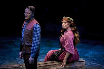 The plot is fairly simple. Vacationing New Yorkers Tommy Albright and Jeff Douglas stumble upon the magical town of Brigadoon as they wander through the Scotland countryside. While it isn't on their map for some strange reason, the two men are welcomed by the happy town folk and Tommy becomes enamored with Fiona MacLaren while Jeff is chased by the rambunctious and flirty Meg Brockie. They are both also invited to come to the wedding that evening of Charlie Dalrymple and Jean MacLaren, Fiona's sister. However, trouble is brewing when Harry Beaton, who is in love with Jean and resentful that she has chosen another man to marry, threatens to leave Brigadoon which could spell doom for the sleepy town's inhabitants. Alan Jay Lerner's book gives just enough information on the characters to make them realistic while also foreshadowing the secret of Brigadoon so that when it's revealed it isn't too much of a shock. His lyrics are a perfect combination of lushly romantic for the love ballads and duets and witty rhymes for the comical numbers. The music by Frederick Loewe is idealistic and dreamy with such well-known tunes as "The Heather on the Hill" and "Almost Like Being in Love." Director Cambrian James does a wonderful job staging the show in the small Hale space to provide a perfect amount of intimacy while also using the various aisles and stairs to expand the feeling of a larger town setting for the many large ensemble numbers. His choreography is superb and well danced by the cast. Cathy Hauan's music direction derives impressive vocals from the entire cast, including some beautiful harmonies. Tia Hawkes' colorful period costumes are very striking. The lighting by Tim Dietlein bathes the stage in deep blues for the nighttime scenes and warm colors for those set during the day. As Tommy Albright, Austin Delp's rich voice delivers gorgeous versions of some of the show's biggest hits. He and Amanda Valenzuela, as Fiona MacLaren, create a romantic pair you want to see succeed, even though there is a big obstacle in the way of their budding romance. Valenzuela creates a warm and honest portrayal of Fiona with a lilting singing voice that soars. David Michael Paul provides plenty of humor as the fun-loving but slightly sarcastic Jeff Douglas. Allan DeWitt and Carmiña Garey are charming as Charlie and Jean, respectively. DeWitt has been in what seems like close to a dozen Hale productions, but this is the first time I believe he's had the chance to show how wonderful of a singer he is. His performance of "Come To Me, Bend To Me" is gorgeous, with some impressive high notes. Garey's balletic abilities are wonderful. Brie Wadsworth-Gates is a hoot as Meg Brockie, and Justin Howell is wise and warm as Mr. Lundie, the man who had something to do with the town's secret. As Harry Beaton, Kyle Webb interjects a constant sense of brooding. Jared Kitch, Adam Guinn, Ashley Bauer, Noah Delgado, Ryan Monaghan and Kayla McLemore provide ample support as various family heads and townspeople. The entire ensemble (Kayleah Wilson, Jeremy Cruz, Karis Eliese, Nick Fernandez, Albert Johnston, Ariana Mai Lucius, Bennett Allen Wood, and Olivia Woodward-Shaw) are all quite effective in creating unique characters. Many of the cast also have realistic Scottish accents that never falter. In Brigadoon, Tommy and Jeff go wandering through Scotland to escape their hectic lives. Seeing this charming, blissful, and romantic musical in Hale's gorgeous production with this glorious cast is the perfect escape from anything that troubles you. Brigadoon runs through March 26, 2022, at Hale Centre Theatre, 50 W. Page Avenue, Gilbert AZ. For tickets and information, please visit www.haletheatrearizona.com or call 480-497-1181. Producers and Casting Directors: David and Corrin Dietlein