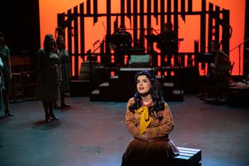 Set in the Blue Ridge Mountains of North Carolina in the mid-1940s, with several important flashbacks to 1923, the plot focuses on two characters whose stories interweave: the young, idealistic fiction writer Billy Cane and the no-nonsense editor of a literary magazine, Alice Murphy. After returning home from war and discovering that his mother has died, Billy decides to follow his dream to be a writer, so he moves from his small home town to the big city of Asheville. Using a lie, he finds a way to meet and get one of his stories to Alice, the nice but somewhat imposing editor of the town's leading literary magazine, the Asheville Southern Journal. While Billy hopes to sell Alice one of his stories, we learn through flashbacks that the prickly Alice was once a free-spirted and idealistic young woman and we witness the tragic event in her past that resulted in her becoming a stern and somewhat emotionless woman. As the plot moves back and forth in time, and the details of Billy's present and Alice's past are revealed, both characters are forced to face the truth about themselves while always looking for the bright star in their life to follow to a hopefully optimistic future. The score for Bright Star is by well-known comedian Steve Martin and pop singer Edie Brickell, who had one hit song, "What I Am," in 1988. While neither have composed a score for a stage musical before, Martin has authored several plays and Brickell has composed many songs. The two won a Grammy for a song from their bluegrass album "Love Has Come for You" and the score for Bright Star features two songs from that recording. The hints of banjo and fiddle in the rich orchestrations tie directly into the setting of the musical and are delivered beautifully by the cast and the small onstage band under the vocal and music direction by Leia Wasbotten, Mario Yñiguez, and Andrew Chen. Inspired by actual events, Martin's book for the musical creates realistic characters and, while it does occasionally border on melodrama and has a somewhat predictable ending, the dialogue and situations never push too far to become unrealistic. The only slight drawback is due to the structure of the play and how it follows two main characters across two time periods. For example, the opening number is centered on Alice but she then disappears while Billy's story is introduced, which makes it slightly confusing. However, the shifts in the two different time periods are handled expertly and even though I've seen the show before, so I knew what was going to happen, I was still pulled emotionally into the story and found myself in tears at the end. You can chalk up my emotional impact to Martin's beautiful book and characters and the touching score, as well as Robert Kolby Harper's assured direction and a very moving and emotionally-stirring performance from Frenki Hykollari as Alice. She beautifully navigates through a range of emotions that Alice experiences in the two different time periods in the show. Hykollari is girlish and carefree in the scenes set in the past but almost emotionless in the scenes set 20 years later. While that may be a bit disjointing at first, after we witness the shocking scene toward the end of the first act, the two different portrayals of Alice makes complete sense. Hykollari's singing voice is clear and gorgeous, and it soars on the many ballads and upbeat tunes in the show. It's an emotionally rich and fulfilling performance. As Billy, Matt Griesgraber is a perfect combination of goofiness and charm. We understand the drive this young writer has as well as the conflicts in his life due to Griesgraber's lovely portrayal; his clear and bright singing voice is beautiful on Billy's numerous songs. Desmond Woodward is good as Jimmy Ray, the wealthy young man Alice falls for in the scenes set in the past. Woodward provides nice conflicted feelings when Jimmy Ray is faced with several decisions in his life. As Jimmy Ray's father, the main protagonist, James William Taylor is excellent. He is commanding and eerily scary at times and his deep singing voice and assured vocal delivery provide realistic layers to the character. As Margo, the hometown girl who is smitten with Billy, Hannah Brudnock oozes charm and spunk and a lovely singing voice. In supporting parts, Leo Gallegos Fraijo and Aydan Bruce are great comic sidekicks as two of the magazine's employees who work for Alice, and Yophi Adia Bost and Teddy Ladley are wonderful as Alice's parents. Also, Josh Miranda is lovely as Billy's dad, and Xingyu Wang has good comic line delivery as the man who works for Jimmy Ray's father. Harper's direction ensures every actor creates realistic characters, and his staging works well with the use of Dori Brown's wood centric set design that uses wooden crates, chairs, desks, and a moving platform that are moved around to constantly form new locations that move us from scene to scene and back and forth in time. His dance steps are period and regional specific and, since the opening song has Alice telling that if we knew her story we'd have a good story to tell, I like how Harper keeps the ensemble members on stage watching the action many times as if they are witnesses to the stories in Alice, Jimmy Ray, and Billy's lives. Jordan McAuliffe's lighting uses deep oranges, yellows and blues to depict the various day and night time scenes and Maci Hosler's costumes are lovely period and character specific designs. While the story of Bright Star may be slightly predictable, the plights of the characters are realistic and the relationships are ones you root to see succeed. With a score that includes numerous toe-tapping tunes and a plot that covers a wide range of emotions and themes, Bright Star, in this ASU Music Theatre and Opera presentation, is a beautiful and moving tale of redemption, forgiveness and understanding. Bright Star runs through April 24, 2022, at Arizona State University Music Theatre and Opera, with performances at th