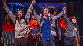 Like the book, the plot of the musical follows the story of Percy Jackson as he discovers that he is a "half-blood," the son of a mortal parent and a Greek god. Percy ends up at Camp Half-Blood, a safe harbor for the half-blood children to learn how to fight and protect themselves from the monsters in the world who want to do them harm, where he realizes that there are many other kids like him. When it's discovered that someone has stolen Zeus' lightning rod, and Percy finds it in his backpack, so he's targeted by the Gods and various monsters who believe he's the thief, he, along with his friends Grover and Annabeth, go on a quest to return the lightning, clear Percy's name, and prevent a war between the gods. The music and lyrics by composer Rob Rokicki are upbeat, varied and, like the book by Joe Tracz, infused with humor and a fun, campy, and somewhat self-deprecating tone. While you may get more of the nuances and references in the songs and script if you're familiar with the books or films, I've only seen one of the films and that was years ago but I was still able to easily grasp the plot points and information necessary about the characters. While there is some semblance to the three main characters in the "Harry Potter" series (Harry, Hermione, and Ron) in the characters of Percy, Annabeth, and Grover, and the Camp Half-Blood setting is somewhat similar to the Hogwarts school, there is still plenty of originality in Riordan's characters and situations to set it apart and the musical adaptation adds plenty of humor, which is minimal in the Harry Potter books and films. Director Bobby Sample has assembled a large, talented cast who do wonderful work in creating believable characters, including several who make sure every joke they have lands, lands well, and gets big laughs. As Percy, Owen Donsker oozes teen angst as well as shock and confusion once he discovers that Poseidon was his father. He also lets us see how Percy is a vulnerable young man but also one infused with boyish charm, which he shows off in spades in the song "Good Kid," as he talks about the pain and difficulty of trying to fit in. Even though he tries to be good and swears he didn't mean to do anything wrong, he keeps getting blamed for things he didn't do. With a rich performance comprising excellent acting choices and a beautiful singing voice, Donsker is simply wonderful. Zoie Moller is Annabeth, the daughter of Athena, and her portrayal is smart, sassy, and tough. As Grover, a satyr, Landon Kalin has perfect comic timing and wonderful facial expressions that get an abundance of laughs. Like Donsker, Moller and Kalin both have rich singing voices and provide assured performances; together they realistically form a fierce trio of friends who have each other's back. Donsker and Moller co-starred in 13 at Spotlight a few years back and it's nice to see this talented duo back together on stage. This is Kalin's first Spotlight show, after appearing at other youth theatres in town, and I look forward to more. In the supporting cast, Braiden Lee is wonderful as Luke, another Half-Blood that Percy meets at the camp, as well as a few other characters. Lee leads "The Campfire Song," and he also skillfully accompanies the fun tune on guitar. As Percy's mom, Lauren Youngstedt is excellent. Her singing voice soars and she delivers a truly believable performance of this mortal woman. Andrei Igdanes is fun as a teacher at Camp Half-Blood who also happens to be a centaur, and Zoey Waller is fierce as Clarisse, the daughter of Aries. The entire large ensemble are good dancers and singers. Sample's set design is mainly static but excellent, with the entire back wall used as a screen to constantly to display still images, projections, and moving video elements that quickly whisk us from one location to the next. Sample also contributed the monster and puppet designs, which are very good with a fun comical edge. Falin Ossipinsky's choreography is wonderful, with athletic touches; it is danced well by the large cast. Her hair and make-up designs and Samantha Essary Utpadel's costumes are creative, colorful, and slightly humorous. The lighting design by Anthony Rozzen, Josh Hontz, and Jack Taylor uses a range of bright colors, dark tones, and shadows to add humor and mystery to the production. Jack Taylor also provided the fight choreography, which includes several large and realistic fight sequences. Musical director Elisa W. Kurbat derives wonderful notes from the large cast and the superb onstage band. With fun music, interesting characters, a plot stuffed full of adventure, and a crackerjack cast, The Lightning Thief: The Percy Jackson Musical is a fun, comical and fantasy-filled musical treat. The Lightning Thief: The Percy Jackson Musical runs through May 29, 2022, at Spotlight Youth Theatre, 10620 N 43rd Avenue, Glendale AZ. For tickets and information, please visit www.spotlightyouththeatre.org or call 602-843-8318. Director/ Scenic and Projection Design / Animation / Monsters and