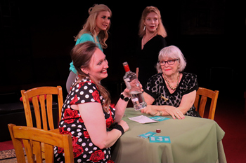 Set in a Southern town, the plot focuses on Connie, Leona and Millie, a group of close, longtime friends who meet weekly to play cards. But there's a problem: the fourth member of their group, Mary, just passed away. Since Mary was the somewhat dim-witted Millie's bridge partner, and since it was Millie's turn to carpool, she does what any good friend would do and steals the urn containing Mary's ashes from the funeral home so she can attend bridge night with her friends. While the women fear Millie will be arrested for breaking into the funeral home and stealing a "body" the night before it's to be buried, there is also the issue of a policeman who knocks on the door and the dating trauma Connie's daughter is dealing with when she was stood up on a date earlier that night that the women must deal with. As they band together to face these obstacles, they discover that the power of friendship can help you face the difficulties of life while also reminding you to live your life to the fullest. Under Van Rockwell's assured direction, the cast all do a very good job in portraying a group of friends who have known each other for years. Diedra Celeste Miranda is lovely as the frazzled Connie, who has to deal with a seemingly never-ending stream of problems, from the nonstop drama of her college student daughter Rachel's dating woes to Leona's continual drinking and Millie's foolish remarks and continual confusion, all while also serving as the voice of reason for her friends. Jori Mosier is wonderful as the hard-drinking Leona, a lovable lush but also a woman who doesn't mince words and, as Millie, Barbara McBain is a hoot. McBain gets just about every punchline and delivers them all with ease while also getting big laughs from the audience for her efforts. As Rachel, Rachel Brumfield oozes sexual frustration and college-aged angst, and Van Rockwell is bright and down-to-earth as Bobby, a character that I'm specifically saying as little about as possible so as not to ruin some of the fun surprises in Elliot's script. Rockwell's staging works very well in the intimate and in-the-round venue so that the action is realistic and that the fairly continual movement doesn't block anyone's view of the characters and situations. While the script takes a while for the elements to click into place, and if you're expecting a farce or laugh out loud comedy you'll be shocked in that it's only mildly amusing for the first 20 minutes or so, the heartwarming and life affirming moments in the second act may find you getting a little choked up as they did for me. Cheryl Schaar's set and prop designs do a fairly good job in creating the living room in Connie's home and the costumes by Teresa Knudson are character appropriate. The lighting design by Rockwell, Don Bluth, and Bret Reese and the sound design by Rockwell and Roger McKay add some nice moments, especially in the upbeat and hilarious scene that ends the first act. Exit Laughing may not be a perfect comedy but it has several laugh out loud moments and a wonderful life lesson about not letting life pass you by. While Mary has instructed her friends to not sit around but instead to get out and see the world and have fun so they can exit their lives laughing, you'll most likely find yourself not just exiting the Don Bluth Front Row Theatre laughing but also thinking about Mary's words of advice and what you can do to life your life to its fullest. Exit Laughing runs through October 22, 2022, at the Don Bluth Front Row Theatre, 8989 E. Vía Linda #118, Scottsdale AZ. For tickets and information visit www.donbluthfrontrowtheatre.com or call 480 314-0841. Directed by Van Rockwell Cast: |