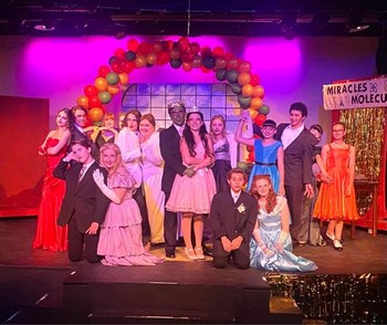 The musical takes place in the 1950s as the threat of a nuclear holocaust and the potential sudden drone of air raid sirens are always top of mind. It's a typical day for the teens at Enrico Fermi High as they discuss dating and school plans while under the watchful eye of their rigid, ruler-wielding principal, Miss Strict (Noelle Parent). Jonny Warner (Connor Olden), the leather jacket wearing rebel who intentionally spells his name without the "h", and good girl Toffee (Iris Van Slyke) fall in love, but following a short period of dating, Toffee breaks it off after being pressured by her parents and Miss Strict's insistence that Jonny is a bad influence. So, Jonny does what any heartbroken teen does and flings himself into a vat of toxic goo at the Francis Gary Power nuclear power plant and is buried at sea. Jonny reappears a few weeks later as a green-hued zombie, and reporter Eddie Flagrante (Andrew Wildermuth) picks up news of there being a zombie in town. Thus, a plot is set in motion for Jonny to be accepted for who he is and to be allowed to take Toffee to the prom, with which Miss Strict clearly has major issues. While the plot of Zombie Prom is fairly predictable, there is a fun twist in the second act that makes for a rewarding conclusion. John Dempsey's book and lyrics include some very funny lines that tie into the 1950s setting, the atomic age, and the topic of zombies, and the music by Dana P. Rowe is bright and lively. The Actor's Youth Theatre cast all seem to be having a blast playing these period characters. While some of the cast's singing abilities are just OK, all of their portrayals are sharp and bright. Connor Olden and Iris Van Slyke are affable and endearing as Jonny and Toffee, and Andrew Wildermuth is a hoot as the zany tabloid reporter. Noelle Parent has appeared in dozens of shows in town and here she delivers another exceptional performance, with expert line delivery and warm singing vocals. Valerie Codling, London Crosby, Saniya Sapakie, Porter Carr, Colin Quintana, and Tyler Gilmore play the two trios of boys and girls who are friends with Jonny and Toffee and all have good comic timing and solid stage presence. Director Xelha Castrejob is successful in deriving solid performances from the large cast. Djuro Baich's period choreography is peppy, varied, and fun. There is even some tap in one number that shines. Zombie Prom is a musical on the lighter side, with an almost entirely predictable plot, but it's still a fun, quick, witty, and quirky show that delivers laughs. This production is double cast with alternating performers playing the lead roles. Zombie Prom runs through October 29, 2022, at Actor's Youth Theatre at the Tuscany Theatre, 861 N Higley Rd, Suite 105, Gilbert AZ. For tickets and information, please visit www.actorsyouththeatre.org or by calling 480-907-7050 Director/Music Director: Xelha Castrejob Cast: |