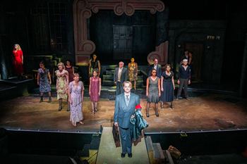 Christopher Isherwood chronicled his Weimar-era experiences as a struggling writer in the memoir-ish 1939 novel "Goodbye to Berlin," which was adapted into a play as I Am a Camera by John van Druten in 1951. The Broadway play and subsequent 1955 film adaptation both starred Tony-winner Julie Harris as Sally Bowles. For the musical, Isherwood became Clifford Bradshaw, played here with a wonderful openness and relaxed masculinity by Marrick Smith. His Cliff arrives in Berlin beaming with excitable curiosity at the strange new world he has entered and its promise of adventure ahead. On his first night in town, Cliff connects with the resourceful Ernst Ludwig (Ben Sears), a pragmatic landlady named Fräulein Schneider (Leslie Tinnaro), and the legend-in-the-desperate-making Sally Bowles (Cecily Dowd), chanteuse of the seedy boite The Kit Kat Klub where Cliff's one-time boy-toy Bobby (J Pablo Stewart) also works. Schneider's other boarders include sex worker Fräulein Kost (Erin Stoddard) and a Jewish grocer named Herr Schultz (Fred Frabotta), who harbors romantic feelings for Schneider. Observing them all is the Emcee (Kristen Howe), who comments drolly on life at the club ("In here, life is beautiful! The girls are beautiful. Even the orchestra is beautiful") and beyond. It is one of the most iconic roles in the musical theatre canon and director Adam Karsten's casting choice is one of the few missteps in this generally solid and inventive production. As originated by Joel Grey on stage and screen, the Emcee was a menacing rouge-cheeked marionette, leering and provocative. In the 1998 Sam Mendes-Rob Marshall Broadway revival, the role devolved to a new level of decadence in the Tony-winning no-holds-barred performance of Alan Cumming. Howe does not meet their challenge, nor does she bring anything new to the role. An attractive stage figure, but with variable vocal skills, she strikes poses and teases at naughtiness, but without any of the underlying malevolence that should make you uncomfortable in the character's presence. Fortunately, the other performers bring strong voices and well-developed personalities to their characters. Dowd lets her Sally lean away from anything Liza and makes her "toast of Mayfair" a good-time girl you want to buy a drink. A strong singer working a bubbly Brit accent, Dowd imbues Sally with just enough vulnerability to make you care before letting her calculated choices push you away. As much as Cliff and Sally seem like the stars of the show, it is the story of Fräulein Scheider and Herr Schultz that carries the heart of Cabaret. Tinnaro is an empathetic and naively optimistic Schneider. She sees promise in Cliff's arrival at her boardinghouse and rather than a resigned acceptance, her delivery of "So What?" is a pragmatic assessment of a glass half full. As her suitor, Frabotta is almost too much of a naïf, a pineapple-proffering Paddington Bear who you know will not survive the coming storm. Playing for the brown shirt team, Sears is a semi-suave and affable hustler who turns suitably nasty when the politics move center stage. His temper is leavened, however, when serenaded by Stoddard, making the most of a frequently one-dimensional role, with the polemic ditty "Tomorrow Belongs to Me." It's the second rendering of the song, following a video played on a strangely anachronistic television console rolled on stage for a "march of time" effect that could have been more creatively handled with projections. The most inventive elements of the night are thanks to choreographer Karen Sieber. She resists any urge to lift from familiar Fosse-imprinted screen moves and creates wonderfully organic dances that help underline pertinent plot elements. If her "Two Ladies" feels a bit timid, there are no restraints on "Money" with its riveting assault on the character most obsessed by the subject. The moves for "Mein Herr" eschew the usual finger-snapping and chair-slapping for a chorus of loose-limbed rag dolls jerking to the imagined touch of their manipulators. Two other great musical moments feature the song "I Don't Care Much," nicely performed here by Howe as a subtle counterpoint to various breakdowns and disruptions happening around her, and Stoddard, upstage in smoky lighting, in a nicely period rendition of "Heirat" ("Married") in excellent German as an observation on the burgeoning Schneider-Schultz romance. Over the years, Cabaret has leaned further into its prewar backdrop. The leavening effect of comedy songs like "Meeskite" or romantic ballads like "Why Should I Wake Up?" have yielded to more explicit displays of anti-Semitism sadly resonant with the present, as well as harbingers of the Holocaust. The closing moments of this production don't shy away from making a strong statement. If only there had been the will for the company to forego bows in favor of letting the final images linger unsettlingly with an eventually departing audience. Cabaret runs through February 10, 2024, at Coachella Valley Repertory, 68510 E. Palm Canyon Drive, Cathedral City CA. Remaining performances are Thursdays and Fridays at 7:00 p.m., Saturdays at 2:00 p.m. and 7:00 p.m., and Sundays at 2:00 p.m.. Tickets are $83. For tickets and information, please visit cvrep.org or call 760-296-2966 , Extension 0. |