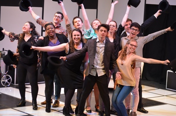 Company is actually more of a play with musical moments. The songs do not rise naturally out of the scenes of dialogue, as they do in more traditional musicals. In fact, this Sondheim-Prince collaboration is an early example of what they would eventually call the "concept" musicalthe concept here being relationships and marriage. The show opens with the introduction of Robert, or Bobby, who is the lone single in a group of married couples. This group is celebrating Bobby's 35th birthday, a motif that bookends the show. The musical numbers sometimes provide commentary on these scenes, but frequently they address the themes of relationships, loneliness, and togetherness directly. Director Alex Felix has done a phenomenal job coordinating a production team and cast made up entirely of students to create an exquisite piece of theatre. Boasting one of Stephen Sondheim's most praised scores, Company sounds wonderful here under the musical direction of Adam Beskind. Both orchestra and ensemble handle themselves quite capably with this score, replete with intricate melodies and witty but complex lyrics. Some of the songs do feel very much of the 1970s, yet somehow that doesn't take away from their effectiveness. Scenic design by Wesley Carretto evokes a mid-century modernist abstraction of urban life, taking inspiration from various well-known incarnations of the show to produce a single elegant set for this intimate black box production. Elena McNeice's costume design makes subtle use of the color palette, joining each couple through their own hue. One of the most innovative parts of this production is its use of projections, designed to great effect by Sonali Mehta. The cast makes frequent use of mobile phones, with their texts and social media posts shown large on the wall behind them, and this puts a fresh, contemporary sheen on the show, while also suggesting that these technologies might be isolating us as much as they bring us together. Julia Medine's choreography enhances the humor of several musical numbers, especially the crowd-pleasing "You Could Drive a Person Crazy." This production might have followed the example of many recent others and removed the "Tick-Tock" dance, which does not always sit comfortably in the show, and in this case the creative choices don't feel particularly inspired or well executed. Another point of concern is the riotous act two opener, "Side by Side." One of several potential showstoppers in this musical, this number labors through moments of purported tap dancing that is clearly outside the training of both the choreographer and the cast. Company truly is carried by the character of Bobby, and C.J. Cruz brings sincerity and believability to the role, particularly remarkable since he is essentially half as young as Bobby. Sarah Jacobs, as Amy, is hilarious and zany in her portrayal, and her "Getting Married Today" is a true highlight of the production. Kelly McLaughlin makes April, Bobby's flight attendant fling, her own, moving away from the airheadedness this character typically exhibits, and giving her a poise that feels fresh. Shaina Lubliner is a standout as the dieting, karate-student Sarah. Her timing is superb throughout, and she makes a distinct impression in this ensemble. Instead of attempting to decide whether or not marriage still matters, especially in this day and age, this production has effectively broadened the themes of the musical to focus on the universal fear of being alone and what that means in our world, where we seem to understand ourselves more and more through social media and digital communication. How important are physical relationships, and more importantly, building those relationships beyond the occasional fling, out from behind the protection of a digital screen? This Company ultimately wants us all to take time to get to know each other, to embrace our differences, and, in turn, to learn more about ourselveswhich is what "Being Alive" is all about. Company is presented by the Hoof 'n' Horn at the Sheafer Theater at Duke University's Bryan University Center on west campus through February 4, 2018. The Sheafer Theater is located at 125 Science Dr. Durham NC. Tickets can be purchased at the Sheafer Theater or online at tickets.duke.edu. Playwright: George Furth Cast: |