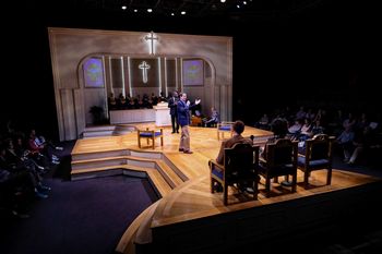 The Christians takes place in a church founded by Pastor Paul (a charismatic Joey Collins) and his wife Elizabeth (Nemuna Ceesay), who have seen their ministry grow over twenty years, from very small numbers in a storefront building to a megachurch of thousands. With the assistance of Elder Jay (PlayMakers favorite Jeffrey Blair Cornell) and Associate Pastor Joshua (a riveting Alex Givens), the church has cultivated its positive reputation and devoted following. Following the choir's invitation to worship, the audience serves as the congregation for Pastor Paul's emotional sermon. Utilizing his microphone with such ease that it almost seems like another appendage, Paul paces up and down, weaving his spell like many televangelists have before him. He praises the blessings the church has received in paying off their building debt, then moves swiftly into a fiery speech that reframes a key theological tenet of the Christian faith. It is a stunning moment that almost immediately starts the disintegration of his congregation and his own family. Mr. Hnath knows a thing or two about theology. He grew up in an evangelical church, and his mother went to seminary school and became a minister. He even thought of doing the same before his love of theatre took him into a new direction. With this play, he clearly hopes to give the audience more than something to talk about. In an interview with dramaturg Jacqueline E. Lawton, he states, "I'm interested in not giving the audience that breath at the end. If the play doesn't do it, it's making the audience contribute something." He seems to have been successful; conversations started among audience members at the end of the performance I attended before we even made it to the lobby. Hnath stays respectful to all sides; he shows great sympathy to his characters on all sides in this conflict of beliefs and ideas. Throughout The Christians, the characters speak into hand-held microphones even when they are in private conversation. Occasionally, Pastor Paul narrates moments of these exchanges ("He says... Then she says...") and he sometimes speaks in very short sentences, stylistic elements seen in some of Mr. Hnath's previous plays. While these techniques reinforce the subjective, tentative qualities in these characters and their positions, they are not as effective here as it they may have been intended to be. Director Preston Lane makes note of how similar this play is to the works of Henrik Ibsen, whose dramas similarly explore the battles between radicals and their resisters. Lane, making his PlayMakers debut, has assembled a cast and crew that is both efficient and effective in their craft. Scenic design by Alexis Distler is remarkable for its service not only to The Christians but also the production of Tartuffe that is in rotation for this run. Oliver Wason's lighting design shifts gradually to underscore the dilapidation of the spirit of both the church of Pastor Paul. Real church choirs from the local community provide the music for this production; at the performance I attended, the United Church of Chapel Hill was represented. This is a nice and understandable touch, though the choir seemed out of scale with what one might expect to find in a megachurch. And, though the hymn selections clearly reinforce the play's themes, their style is more "southern gospel" and less secular rock, the common choice of megachurches these days. The central theological conflict in this play is perhaps stated most succinctly by Elizabeth, the pastor's wife, when she observes a bit sarcastically that religious tolerance sometimes requires us to be intolerant of intolerance. The Christians challenges us to examine how we respond to those who believe differently than we do. The fact that we live in such a divided nation today makes this play even more relevant. It reminds us how important it is to find a way to embrace our differences and, hopefully, give each other the grace that so many are in search of. The Christians, through March 10, 2018, for PlayMakers Repertory Company at the Paul Green Theatre at the Joan H. Gillings Center for Dramatic Art, 150 Country Club Road, Chapel Hill NC.Tickets can be purchased online at www.PlayMakersrep.org or by phone at 919-962-7529.  Playwright: Lucas Hnath Cast: |