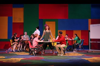 The show opens with an invitation from Junie (a captivating Jenna Davenport) to join her as she fills her journal with "Top Secret Personal Beeswax." She has high expectations for the new school year based on her good experience in kindergarten, but she quickly finds that first grade is not everything she was expecting it to be. One of the more memorable songs in this musical "When Life Gives You Lemons (Make Lemonade)," and that is just what Junie does on her many misadventures at school, whether finding new friends or adapting to new eyeglasses. Marcy Heisler, who wrote the book and lyrics, wove together plots from five of the books in the series. The music is by Zina Goldrich (who, with Heisler, also wrote the cult favorite song, "Taylor the Latte Boy," made famous by Kristin Chenoweth). Some of the songs, like "Lunch Box," are simplistic and short, sounding a bit like they might have been featured on "Sesame Street," while others have more of a Broadway flavor"Gladys Gutzman" reminds me a bit of Jerry Herman's "Hello, Dolly!." Under the direction of Kathleen Rudolph, the production moves along swiftly. The musical accompaniment was pre-recorded and a bit hard to hear at the performance I attended, but the low volume appears to be an intentional choice that allows the cast to sing without mics, and it is great to hear them that way. Dennis R. Berfield's scenic design truly captures the essence of first grade, with its bold use of primary colors and a sliding mural of a journal cover decorated with graffiti. Jenna Davenport shines as the lead in this show. Though a high school student in real life, on stage she transforms completely into 6-year-old Junie B. Jones. Callie Colvard and Laura Lillian Baggett have fun as Junie's foils, former best friend Lucille and tattletale May, respectively. Junie's friend Sheldon Potts is performed with sweet sincerity and a great sense of comedic timing by David Mills. Honorable mention must be awarded to Britney Duong, who stole the bus ride scene at the performance I attended. In addition to playing her part (Bobbie Jean Piper), Britney covered the role of Grace (Maddie Behrens was out due to illness), mining comedic gold as she conversed and even sang two-part backing vocals with herself. Whether you read the Junie B. Jones books as a child or to your own children, there is plenty in this stage adaptation to enjoy. Junie B. Jones joins the ranks of literary and musical characters who march to the beat of a different drummer. Just as Huck Finn or Pippi Longstocking did before her, Junie catches us with her quirky individuality, ultimately revealing an endearing humanity we recognize as universal. Junie B. Jones: The Musical, through March 3, 2019, at Raleigh Little Theatre, Cantey V. Sutton Theatre, 301 Pogue St., Raleigh NC. On March 2 there will be a special performance for individuals with sensory sensitivity. Tickets can be purchased online at www.raleighlittletheatre.org or by phone at 919-821-3111. Book and Lyrics: Marcy Heisler Music: Zina Goldrich Cast: |