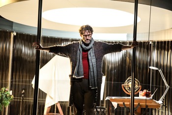 The play takes some liberties with the life of the great astronomer and physicist Galileo Galilei (Ron Menzel), who is considered by many to be the father of modern science. But it tells the true story of how Galilei seized on the new technology of telescopes to make observations of the heavens which supported his theory of a heliocentric universe. This theory contradicted hundreds of years of geocentric thought and the teaching of the powerful Roman Catholic Church. Ultimately, Galileo must decide whether he will recant what he knows is true to save himself from torture and death at the hands of the Catholic Inquisition, or stick to his beliefs and lose his chance to continue looking for opportunities to advance the causes of science and reason. This production is set in a hi-tech lab that reminded me of the Svalbard Global Seed Vault in Norway, which is designed to guard against the loss of seeds and plant life due to large-scale regional or catastrophic global crises. A worker/narrator comes across a computer file on Galileo, which opens before his and our eyes, extending his centuries-old story into the world we live in todayand beyond. From the heliocentric controversy during Galileo's time, to Charles Darwin's theory of evolution some 200 years later, to the current debate about global warming and climate change, the duels between science and religion and truth against power continue to rage. And under the keen eye of director Vivienne Benesch, Brecht's play of religion versus reason resonates just as strongly today as it did in the 1940s. This is by far one of the most engaging and enthralling productions PlayMakers has delivered in recent memory, which is saying quite a bit, considering the high standards it sets. The entire ensemble, many of whom are PlayMakers regulars, are quite strong. Tristan Parks (also playing multiple roles) is a standout as the Ballad Singer, that previously mentioned worker/narrator. Alex Givens and Brandon Haynes (both playing multiple rolls) make strong impressions as Andrea and Prince Cosimo, respectively; both roles require the men to play younger boys, and they convey youthful vitality and naiveté to great delight. A strong and versatile actor is required to take on the role of Galileo Galilei, and Ms. Benesch found him in Ron Menzel. His Galileo, part hipster, part eccentric, is easily identifiable today, and Menzel's enthralling performance, like Galileo's telescope, must be seen to be believed. Scenic and projection design by Jim Findlay is, in this observer's opinion, one of the most creative seen on the Paul Green stage in recent memory. In addition to its seed-bank allusions, the set has the feel of a spacecraft, prompting comparisons to the 1972 cult sci-fi classic film Silent Running, which also focused on a solitary man up against impossible odds who decides to disobey authority to do what is ultimately right for humankind. Extending the performance space, seven discs hang above the stage and the audience: one large disc surrounded by six smaller ones, seeming to symbolize the sun, and the six planets known to exist during the time of Galileo. The smaller discs serve as projection screens, giving the audience glimpses of sky (at times blue with clouds and others a starry abyss) as well as other contextual information. Mr. Findlay's use of monitors and video-capture heightens the actors' performances, providing an almost cinematic mode of storytelling. It all is quite striking, and with Kate McGee's lighting design the effect is only enhanced. Costume design by Grier Coleman provides subtle commentary on how the evolving crisis facing Galileo transforms him. He begins barely clothed but is gradually weighed down by more and more layers of drab clothing and scarves, until the passionate red T-shirt beneath is almost completely obscured. The success of this production is rooted in the way it connects Galileo's struggle to the struggles we are living with today: the evolution of social structures, new understanding of gender identity, and the debate about global warming and climate change. One wonders how Brecht might rewrite Life of Galileo for the 21st century. It's clear, though, that he would hold fast to courage and hope that humankind ultimately will bend in the direction of truth. Life of Galileo, through March 17, 2019, at PlayMakers Repertory Company, Paul Green Theatre, Joan H. Gillings Center for Dramatic Art, 150 Country Club Road, Chapel Hill NC. Tickets can be purchased online at www.playmakersrep.org or by phone at 919-962-7529. Playwright: Bertolt Brecht Cast (In alphabetical order): |