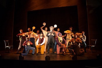 Kander and Ebb wrote scores for musicals about challenging topics (Nazi Germany, for example, and Jazz Age murder celebrities) by tapping into entertainment styles associated with them (Weimar cabaret and vaudeville, respectively). Their score and David Thompson's book for The Scottsboro Boys use a minstrel show theme to tell the real-life story of nine black teenagers falsely accused of rape in Alabama in the 1930s. The minstrel show emerged in the 1830s as a form of travelling entertainment consisting of comic skits, variety acts, dancing and songs. These shows commonly featured white performers wearing blackface to portray dim-witted and happy-go-lucky African-American characters. Though the minstrel show was in decline by 1910, blackface lived on in cartoons and movies, perhaps most notably with Al Jolson in the first motion picture with sound, The Jazz Singer. By the Civil Rights Era, both blackface and minstrelsy were widely recognized as deeply racist forms, and in reaching back to these traditions, the writers of The Scottsboro Boys clearly were counting on the discomfort they would cause in modern audiences at hearing the tragic story. The musical begins not with any of the many male cast members, but with the sole woman, who sits on the stage in under a stark light. Soon she opens the theatre doors for the rest of the cast to march in. She has practically nothing to say, and her purpose here will not be understood until much later in the show. The entire cast consists of people of color, with the exception of David McClutchey as the Interlocutor, who serves as the master of ceremonies and directs the cast to sing a rousing opening number and then seat themselves in the semicircle format common in minstrelsy. The cast does as they are told at first, but soon the most outspoken of the nine boys, Haywood (Darius Jordan Lee), steps up to ask the Interlocuter, "Tonight, can we tell it like it really happened? This time can we tell the truth?" This goal will consume Haywood throughout the show, and it may well cost him and his compatriots their lives. The score is among Kander and Ebb's finest. Kander's toe-tapping and at times haunting melodies linger long after the curtain falls. And Ebb's smartly funny and tongue-in-cheek lyrics are some of his best. The beautiful ballad "Go Back Home" ranks among the best songs written for the stage in recent decades. Theatre Raleigh's production has omitted two musical numbers ("Make Friends with the Truth" and "It's Gonna Take Time") from the score, the former being a true highlight of the original production with its stark commentary on lynching and segregation. It is unclear why they were removed, and needless to say, they are missed here. Otherwise, this production is quite faithful both to the material and the 2010 Broadway production, from Chris Bernier's minimal but effective scenic design to Dorothy Austin-Harrell's grab-bag costume design. Director Gerry McIntyre also provides the rousing choreography for the production, and his instincts are strong both when they provoke our laughter and when they make us uneasy. Eric Alexander Collins' sound effects enhance setting and mood. Christina Munich's lighting design, though beautiful and effective in parts of the production, is uneven in others, leaving characters obscured and audience members wondering where to look. The previously mentioned character of "the lady" (portrayed with stoic warmth by Aya Wallace) also presents a challenge. She is effective when she serves as a co-observer with the audience, but this production inserts her into quite a bit of the activity onstage. By the time the audience realizes who she is, the impact of the moment has been a bit weakened. Imperfections aside, The Scottsboro Boys is not be missed, whether it is for the history lesson, the strength of the book and score, or the accomplished cast. As Haywood Patterson, the main protagonist of the show, Darius Jordan Lee provides a moving portrayal of a man who has been stripped of every form of freedom except the truth he holds firm to in his heart. Other standouts are Trey McCoy and Melvin Gray, Jr., who play Charles Weems and Ozie Powell, as well as the two women who accuse the boys of raping them. Mr. Gray gets carried away as Ruby Bates and takes us with him with his rendition of "Never Too Late." As Eugene Williams, the youngest of the nine, Michael Lassiter is both touching in his sensitivity and impressive in his dancing and singing. Jason Daniel Rath is humorous as Mr. Tambo but really shines as the boys' lawyer Samuel Leibowitz, particularly with his number "That's Not the Way We Do Things." And David Robbins makes a triumphant Theatre Raleigh debut as Mr. Bones, hilariously subverting the minstrel device of white mockery of blacks as he embodies the stereotypical white men of power. Though some have criticized this show for its risky artistic choice, the minstrel tradition is not being celebrated here, but used to underscore the systemic racism that assaulted black people both in the courtroom and on the stage. Near the end of the show, Haywood hears his ultimate fate from one of the guards: "You're gonna lie in jail and die in jail. The only thing left will be how people remember you... if they remember you." If nothing else, here's hoping this musical keeps the story of Haywood and other eight young men alive. The Scottsboro Boys, through September 15, 2019, by Theatre Raleigh, Kennedy Theatre, Raleigh Memorial Auditorium, 2 East South St., Raleigh NC. For tickets and information, visit www.theatreraleigh.com or call 919-832-9997. Music and Lyrics: John Kander and Fred Ebb Cast: |