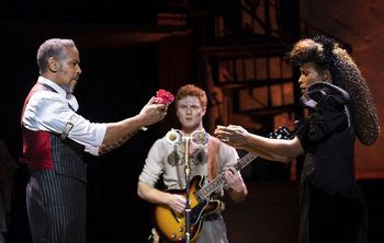 The story is about the ancient myth of Orpheus (sung beautifully by Nicholas Barasch), who travels to the Underworld ruled by Hades (Kevyn Morrow) to bring his love, Eurydice (a delightful Moran Siobhan Green), to the mortal world. This telling is narrated by the god Hermes (the amazingly talented Levi Kreis). Orpheus begins a courtship with Eurydice while Hades's wife Persephone (a hauntingly irresistible Kimberly Marable), tired of life in Hadestown, has come up from the Underworld to enjoy the mortal life (bringing spring with her). Hades wishes he had someone to appreciate the insulated but efficient city he has built below. And he eventually comes across Eurydice, who has become weakened by cold, starvation, and neglect from Orpheus. Tempted by the Fates (Belén Moyano, Bex Odorisio, and Shea Renne), she agrees to go "way down under the ground" with Hades, where he takes her memory and puts her to work building his walled city. Determined to get her back, Orpheus learns from Hermes how to get to Hadestown. Once there, he sings a song of such beauty that it convinces Hades to allow for Eurydice's return, but on one condition: Orpheus must lead her out, and if he turns around to confirm she's still behind him, she will return to the underworld to remain forever. Following on the footsteps of another beautifully and critically acclaimed directed musical, Natasha, Pierre, & The Great Comet of 1812 , Rachel Chavkin has proven herself as one of the leading directors of our time. Her keen eye is as innovative as it is imaginative. All the creatives behind the scenes are just as worthy of praise. Special mention must be made of Rachel Hauck's scenic design, which is as innovative as it is simplistic. Bradley King's lighting design provides effective mood, playing off both light and shadow. Anaïs Mitchell's music brings a fresh new sound to the musical theater genre, effectively blending multiple styles from New Orleans jazz to traditional folk. The music evokes celebratory joy one moment and turns to aching longing in another. Levi Kreis fills the shoes of the legendary André De Shields, who won the Tony for his portrayal of Hermes. Mr. Kreis is also a Tony winner, for his portrayal of the great piano man Jerry Lee Lewis in the musical Million Dollar Quartet. His Southern soul background makes him a fitting inheritor of the role of Hermes. Special mention also goes to Belén Moyano, Bex odorisio, and Shea Renne as the Fates. Their harmonies blend effortlessly, making three voices sounds like one. Though the myth is a tragedy in the proper sense, Hadestown nonetheless stresses the importance of hope, and it weaves in a moral message that feels quite fitting for our times. May we learn to break down our own walls that we think keep us safe, and realize the beauty that awaits us if we only take a chance. Hadestown, presented by Truist Broadway, runs through February 27, 2022, at Durham Performing Arts Center, 123 Vivian St. Durham, NC. For tickets and information, visit www.dpacnc.com, www.ticketmaster.com, or the Ticket Center at DPAC in person or by phone at 919-680-2787. For more information on the tour, visit www.hadestown.com/tour.php. Music, Lyrics, and Book: Anaïs Mitchell Cast: |