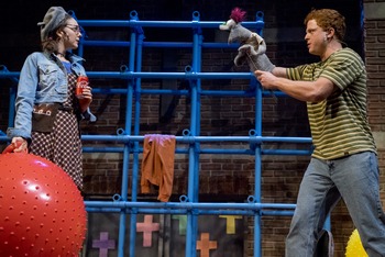 During Sunday school classes at Cypress Lutheran Church in 1997, recent widow Margery (DeAnna Driscoll) leads a "puppet ministry." One of the students is her teenage son Jason (Caleb Foote). While kindhearted and morally ethical, Jason is painfully shy and has trouble interacting with others. During class, he starts using a puppet named Tyrone to communicate. Unlike Jason, Tyrone is a profanity-spewing pervert who seems to have a mind of his own. Shortly after the teen starts talking to Tyrone in private, the sinful soul starts to completely hijack Jason's life. Foote's puppetry skills appear amateurish early on in a couple of the opening sequences, but that's deliberate. After Tyrone's presence starts to become important to the plot, Foote's acting is increasingly animated and expressive. He is able to move back and forth between two opposing personalities in a hilarious manner. An increase in Tyrone's mayhem might be a big part of the staging, but he isn't the only source of laughs. Garrett Marshall and Christina L. Flynn bring enjoyably abnormal qualities in portraying Jason's classmates, while Driscoll and Jason Heil expose the flaws of the adult characters they depict. While none of these people are without sin, they are all revealed to have positive qualities as well. Though partially inspired by his childhood, Askins' satire isn't realistic. Yet there are subjects that are explored with authenticity. Poor parenting, grieving, and struggling with good and evil are referenced in ways that aren't always meant to be humorous. With some tweaks to the premise, Hand to God could have been a drama, which is something Askins has acknowledged in interviews. There are even a few moving moments that Foote and Driscoll provide with their excellent performances. That's not to suggest that the night is without humor for extended periods of time. For the most part, the playwright features consistent gags. A couple of lines try a little too hard to offend, like Tyrone suggesting that the devil was invented. These moments aren't too problematic because the writer's main target isn't necessarily faith, but the idea of perfectionism. He pokes fun at how people make excuses for their faults and weaknesses. His exploration of this message isn't always subtle, yet it fits with the way the plot is told. The artists behind the scenes at the Lyceum Stage, particularly co-founder/Artistic Director Sam Woodhouse, have fun depicting the slow-growing chaos. Woodhouse presents a world that starts out in a fairly ordinary way, but eventually becomes stranger and more unusual. While the narrative is set in a variety of locations, it's Pastor Greg's (Heil) classroom where the biggest action occurs. Robin Sanford Roberts' set and Trevor Norton's lighting add comedic touches when Tyrone commits bad deeds. Matt Lescault-Wood's audio includes plenty of music, though his most tongue-in-cheek selections occur before act one. Several songs with religious lyrics, such as "Spirit in the Sky" and "Jesus is Alright" play as theatregoers take their seat. San Diegans who go into this interpretation cold might be tricked into thinking this is a play meant specifically for a religious Christian audience. If one is prepared for a staging that features a twisted sense of humor, Hand to God more than delivers. As long as one doesn't get easily embarrassed, Woodhouse's interpretation offers uproarious amusement for everybody, religious and non-religious alike. San Diego Repertory Theatre presents Hand to God through November 12, 2017. Performs Sundays through Saturdays at 79 Horton Plaza, San Diego CA. Tickets start at $33.00 and can be purchased online at www.sdrep.org or by phone at 1-619-544-1000. |