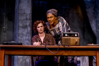 At "a women's prison farm in southeast Texas," a collector of songs for the Library of Congress, Susannah Mullally (Allison Spratt Pearce), visits a talented prisoner, Alberta "Pearl" Johnson (Minka Wiltz). Pearl was arrested for murdering her abusive alcoholic ex-boyfriend. The song collector hopes that she can record Pearl singing rare melodies from a variety of related genres including African, spiritual, and the blues that she learned from her ancestors. Eventually, they both start to find out personal details about each other. Susannah soon comes up with a plan to get Pearl paroled. The two women Higgins has created are developed with a lot of care, and are shown to have realistic flaws. His characters are unjustifiably judged by others because they are women. What's worse for Pearl is that the color of her skin automatically makes other people treat her with disrespect. Despite their likable personalities, neither of the women are saints. At times, Susannah makes decisions that are selfish, and Pearl never regrets the vicious crime that she committed. Even at their most tense, Higgins slowly builds a bond between them that is the emotional center of Black Pearl Sings!. Wiltz and Pearce bring lively personalities to their roles. They emphasize the extreme differences, as well as similarities, that exist between the protagonists. Pearl often speaks with bluntness and mischievous humor. On the other hand, Pearce plays Susannah as a well-mannered speaker who wants to leave an impact on others. If some of the lines that Pearce says might seem a little too on the nose, they still fit Susannah's eager nature. In addition to their acting, the two are just as engaging to watch when they sing tunes such as "Trouble So Hard," "Kumbaya," and "Little Sally Walker." They display true vocal versatility with the different types of music. Director Thomas W. Jones II and his crew move easily between dialogue and music in ways that are thrilling to experience. Conversations are staged in a straightforward manner that doesn't feel overtly theatrical. However, Jones blocks the songs with an almost dreamlike visual style. Matt Lescault-Wood's audio, Sherrice Mojgani's lighting, and Victoria Petrovhich's projections feature artistic touches that enhance and augment the lyrics and score being performed onstage. Lescault-Wood's sound design, in particular, stands out in its use of recordings that are in sync with the action occurring at the Lyceum space. Parts of Sean Fanning's set move in an almost magical way when the two main characters vocalize in solo numbers and duets. Despite the progress that has been made since the 1930s, a lot of small moments and lines of dialogue still resonate, and these disturbing parallels keep Higgins' plot from feeling like an old-fashioned period piece. Given the near endless recent news about allegations of disturbing acts of racism and sexual misconduct, it's not amazing how much of the play connects with today's audience. Hope exists throughout Black Pearls Sings! and it doesn't feel tacked on or sappy. The story is about individuals who experience growth that's genuine and realistic. From beginning to end, Higgins and Jones II find the right balance between a creative tribute to unforgettable music and a fascinating original story about overcoming prejudice. Their work, along with the haunting performances of the cast, results in a deeply affecting evening of theatre. San Diego Repertory Theatre presents Black Pearl Sings! through December 17, 2017, Sundays through Saturdays at 79 Horton Plaza, San Diego CA. Tickets start at $25.00 and can be purchased online at www.sdrep.org or by phone at 1-619-544-1000. |