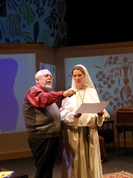In 1942, Matisse (O.P. Hadlock), then an atheist and living in Nice, meets a young woman, Monique Bourgeois (Cecily Keppel), who applies to be his night nurse. After she's hired, the two have intimate discussions about religion, family and art. Later on, Bourgeois quits her position because of her faith, becomes a nun, and adopts the name of Sister Jacques-Marie. Matisse is heartbroken over her choice, and they stop speaking to each other for a period of time. After they become reacquainted in 1947, he begins to design and craft a masterpiece, the Chapelle du Rosaire de Vence, (The Chapel of the Rosary, located in Vence). Kornbluth's drama isn't meant to be an art lecture. While plenty of Matisse's art is featured and referenced during the play, the focus is on the relationship that grows between Matisse and Bourgeois. What's refreshing about the connection they share is that their feelings never blossom into romance. Instead, Matisse acts more like a caring grandfather than an artist obsessed with his muse. Their bond is touchingly explored through the performances of Hadlock and Keppel. Accents used by the majority of the cast weren't the most consistent on opening night. Still, that didn't detract from the leads' emotional acting. Matisse and Bourgeois might have shared a positive friendship, yet Hadlock (who bears an uncanny resemblance to Matisse) showcases the physical and mental pain that haunted the artist. Matisse's best work comes from an inner torment, and he has very few close relationships with family or friends. Keppel's depiction of Bourgeois isn't anywhere near as damaged. At the start, Bourgeois lacks self-confidence and doesn't seem comfortable with herself. Once Matisse and Bourgeois start to hit it off, however, Cecily demonstrates an inner strength that grows from that point forward. Several funny supporting roles bring just the right amount of levity to the tale. Bobbie Helland, Jody Catlin, James Steinberg, and Terrence J. Burke make the most of comic relief sequences. Helland and Steinberg in particular share hilarious, and sometimes moving, chemistry with Hadlock in their portrayals of Matisse's assistant, Lydia Delectorskaya, and the famous Pablo Picasso. Matisse and Picasso have such an entertaining, almost brotherly, rapport that I hope Kornbluth adds another discussion or two between them in later productions. Moments after an intense introduction, Artistic Director Robert Salerno creates an environment that's generally relaxing and welcoming. Part of this stems from his audio, which includes music from pianists/composters such as Frederic Chopin and Erik Satie. In addition to the soothing music, Salerno stages Kornbluth's written conversations that draw audiences closer to Matisse and Bourgeois. Visually, Hadlock's set and Sheila Rosen's costumes, particularly Hadlock's clothing in both acts, pay respect to the real events and environment of the day. Just as important are Salerno's projections, which incorporate plenty of notable work that Matisse created at various points of his career. World War II footage also does a powerful job of adding historical context to the plot. With a tight script and an inspiring factual narrative at its center, The Color of Light warmly honors one of the most important men in the world of modern art. Matisse and Bourgeois's friendship is genuinely uplifting to experience. Vantage Theatre in association with Talent To aMuse presents The Color of Light through February 3, 2018. Performs Sundays through Saturdays at 930 Tenth Ave, San Diego CA. Tickets are $30.00 and can be purchased online at www.vantagetheatre.com or by phone at 1-619-940-6813. |