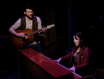 In Dublin, a kind and angst-filled street musician/vacuum cleaner repairman, known only as Guy (Michael Louis Cusimano), still has feelings for his ex-girlfriend (Abigail Allwein). After hearing him perform one of his songs, a Czech immigrant, known only as Girl (Catie Grady), immediately becomes a fan and asks him to fix her broken vacuum cleaner. Soon after meeting, they sing a song that draws them closer to each other, leading to a complex relationship that leaves an impact on both of their lives. An aspect that becomes apparent shortly after the tale begins is humor added for the stage. The film had several funny moments, and in the stage production, a majority of scenes feature at least a couple of lines of hilarious dialogue. A lot of this has to do with Girl's interactions with Guy and others. Despite her stating that she is a very serious person, Girl's restrained presence masks a playful sense of humor. Equally funny are the other Europeans, such as the karate-loving piano store owner Billy (Manny Fernandes), Girl's affectionate mother Baruska (Associate Artistic Director and Director of Patron Services Deborah Gilmour Smyth), and an aspiring artist who happens to be a bank manager (James Michael McHale). They add to a lived-in environment created by Meads and the crew. From the moment audiences enter the theatre, they are transported to an Irish pub, brought to life by set designer Sean Fanning. During the pre-show, performers sing and play traditional Irish songs and dance to some uplifting choreography by Colleen Kollar Smith. The high energy created by Meads from the opening continues throughout the performance. She directs the dialogue in a manner such that theatregoers might occasionally feel like they are intruding on private conversations. Fanning's bar setting is used to vividly represent different locations, such as Guy and his Da's (Kent Brisby) apartment, the repair shop where he works, and a recording studio. Just as visually effective is Nathan Peirson's lighting. He's able to visually alter the mood and atmosphere depending on the location. Each performer brings emotional truth to both Walsh's book and the songs by Glen Hansard and Marketa Irglova. Playing their own instruments, the company sings, acts and dances with deep sincerity in musical numbers such as "Gold," "If You Want Me" and "When Your Mind's Made Up." However, it is the relationship between Guy and Girl that carries a lot of the plot. Cusimano on guitar and Grady on piano share a touching and soulful duet, "Falling Slowly," and are charming in many one-on-one discussions. Various problems get in the way of Guy and Girl's growing love for each other, yet Cusimano and Grady's fine performances make the audience empathize with their struggles. Another powerful element of Walsh's script is that it is both a tale about human connection and a tribute to citizens of Ireland. Early on, the men and women in Dublin are depicted as ordinary citizens with typical day-to-day lives. As events unfold, however, they are able to show artistic sides of themselves. Seeing people such as Guy, Girl, the bank manager, Billy, and Girl's roommates Andrej (Luke Monday) and Svec (Arusi Santi) bonding together through music is inspiring to witness. On par with its source material, Meads' version of the musical drama doesn't skimp on powerful moments and haunting melodies. Lamb's first big musical of 2018 is nothing short of moving. Once, through August 12, 2018, at Lamb's Players Theatre, 1142 Orange Avenue, Coronado CA. Performances are Sundays through Saturdays. Tickets start at $28.00 and can be purchased online at www.lambsplayers.org or by phone at 619-437-6000. |