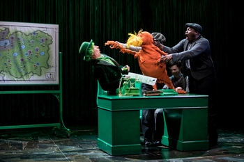 So, Dr. Seuss's The Lorax, a musical version of the 1971 book as adapted for the stage by David Greig with music and lyrics by Charlie Fink, must have seemed like manna from heaven after it was originally produced by London's Old Vic. The Globe has partnered with the Children's Theatre Company, a Minneapolis theatrical institution, to recreate the show for American audiences. It's a lovely, albeit cautionary, tale, and it's told with style and precision. If you're expecting something like "Grinch," however, you might want to wait until November. The Lorax is a very different beast. Apparently Dr. Seuss' favorite, the Lorax is a creature who "speaks for the trees," in this case Truffula trees that can provide the raw material for a soft and sturdy clothing fabric. The Truffula are plentiful in the forest where the Lorax lives, but a man named The Once-ler (Steven Epp) gets the idea for creating the fabric, and bit by bit the trees are cut down to provide resources for The Once-ler's business and the city that grows up around it. The Lorax warns that the disappearance of the trees means that the creatures who depend on them in various ways will need to go elsewhere. When the Lorax, too, leaves, a memorial with the word "UNLESS" on it marks the place where he last stood. It takes a while before The Once-ler figures out what the memorial means, and by that time disaster has overtaken him as well. In addition to Mr. Epps, who is marvelous as The Once-ler, a band of storytellers spin the tale and bring the characters to life via puppetry (designed by Finn Caldwell and Nick Barnes and directed by Mr. Caldwell). They are musicians as well, some of them at least, and while the number of Mr. Fink's songs make me think more "play with music" than "musical theatre," the songs are helpful additions to the story, as well as being easy on the ears. Three puppeteers are needed to bring the Lorax to life. H. Adam Harris operates the head and voices the character, while Meghan Kreidler and Rick Miller operate the body and the feet. The ensemble (Ansa Akyea, Christopher Becknell, Stephanie Bertumen, Brian Bose, Ryan Colbert, Lynnea Doublette, Johannah "Joh" Easley, Rajané Katurah, Ryan Lear, Ryan Dean Maltz, Emily Michaels King, and Autumn Ness), portray the bears, fish, birds, and other animals and people in the story, along with singing and dancing as needed (choreography by Drew McOnie). In fact, the creative team is mostly London-based: Max Webster directs, with scenic and costume design by Rob Howell, lighting design by Jon Clark, and sound design by Tom Gibbons. Local artist James Vasquez serves as associate director, while North County's Elan McMahon is music director. There are a lot of moving parts, but the show flows along for two hours, including one fifteen minute intermission, without making audience members aware of how many moving parts are operating at any one time. And, the lesson of "UNLESS"" is one that adults as well as children will surely find beneficial to heed. Performs through August 12, 2018, on The Old Globe's Donald and Darlene Shiley Stage in Balboa Park, 1363 Old Globe Way, San Diego CA. Performance days and times are: Tuesday, Wednesday, Thursday, and Friday evenings at 7:00 p.m., and Saturdays and Sundays at 12:00 p.m. and 5:00 p.m. Tickets are available by calling the box office at (619) 234-5623 or by visiting www.theoldglobe.org. |